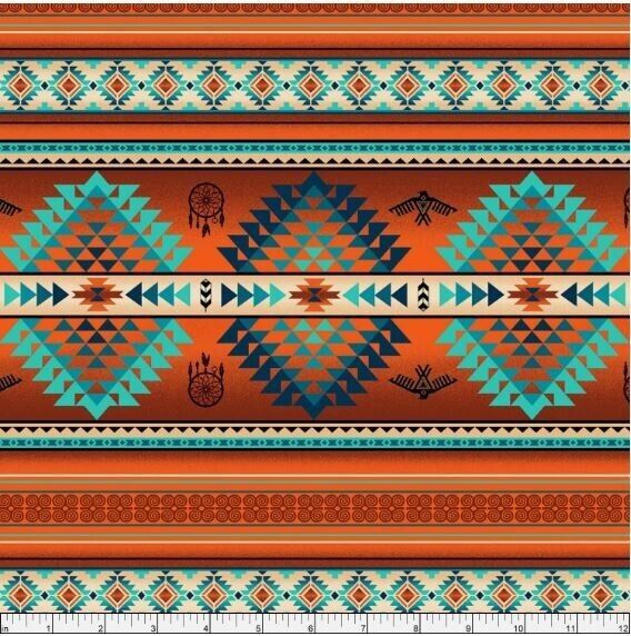 Cotton Southwestern Stripes Tribal Designs Dreamcatchers Feathers Tucson Orange Elizabeth Studios Cotton Fabric Print by the Yard (536-copper)
