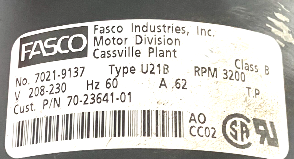 FASCO 7021-9137 Inducer Blower Motor 70-23641-01 208/230V 3200RPM used #M822