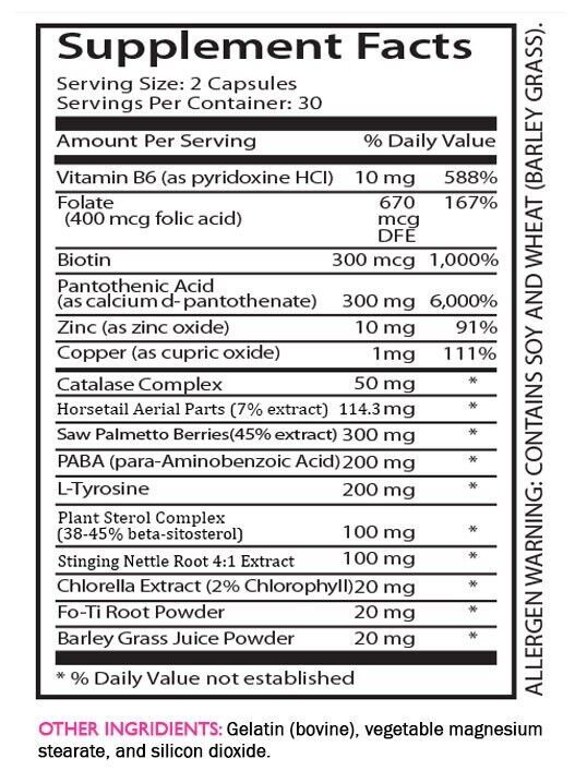 ANTI GRAY HAIR COMPLEX WITH STINGING NETTLE: Stinging nettle is rich in vitamins and minerals that are good for your hair. It keeps hair looking full and strong. Nettle is also known for its ability to keep hair looking youthful.