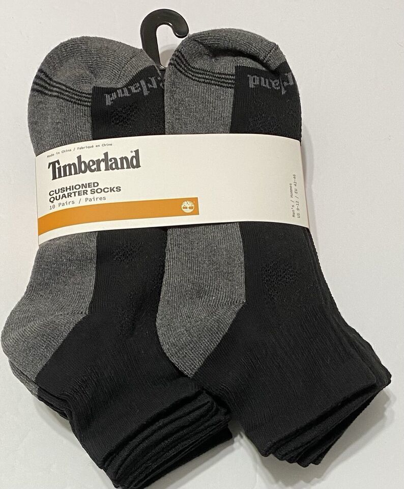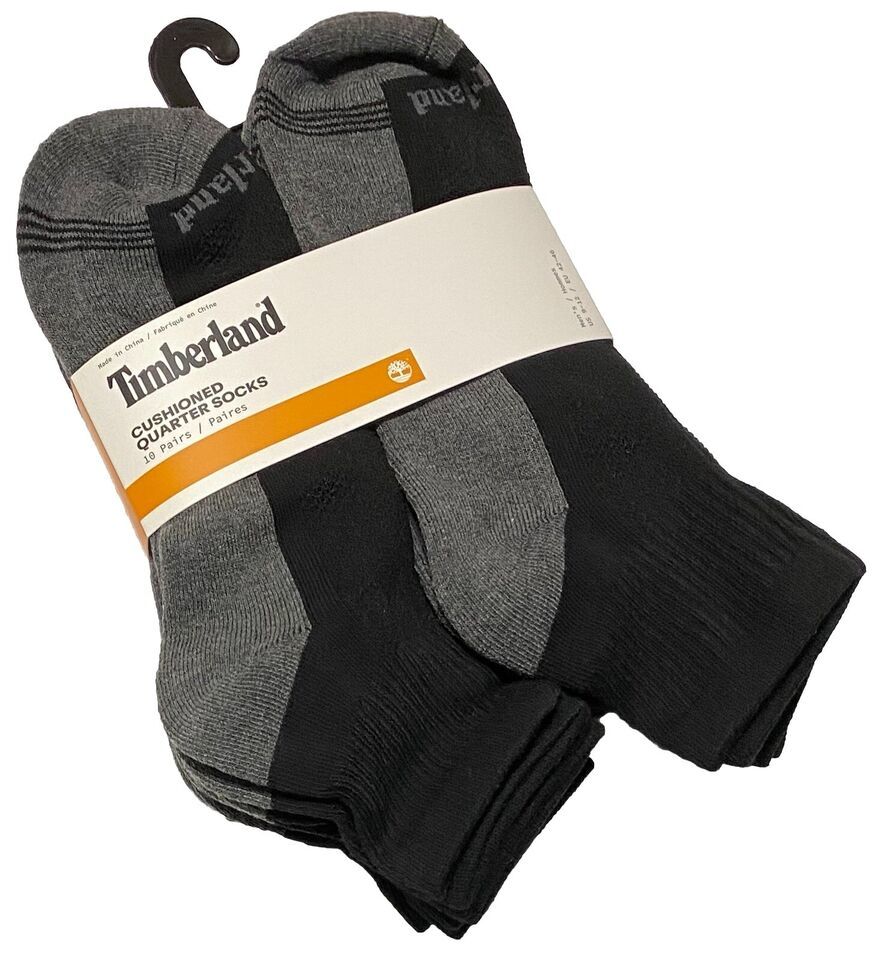 Timberland 10-Pairs Men's Cushioned Quarter Crew Socks Black/Gray