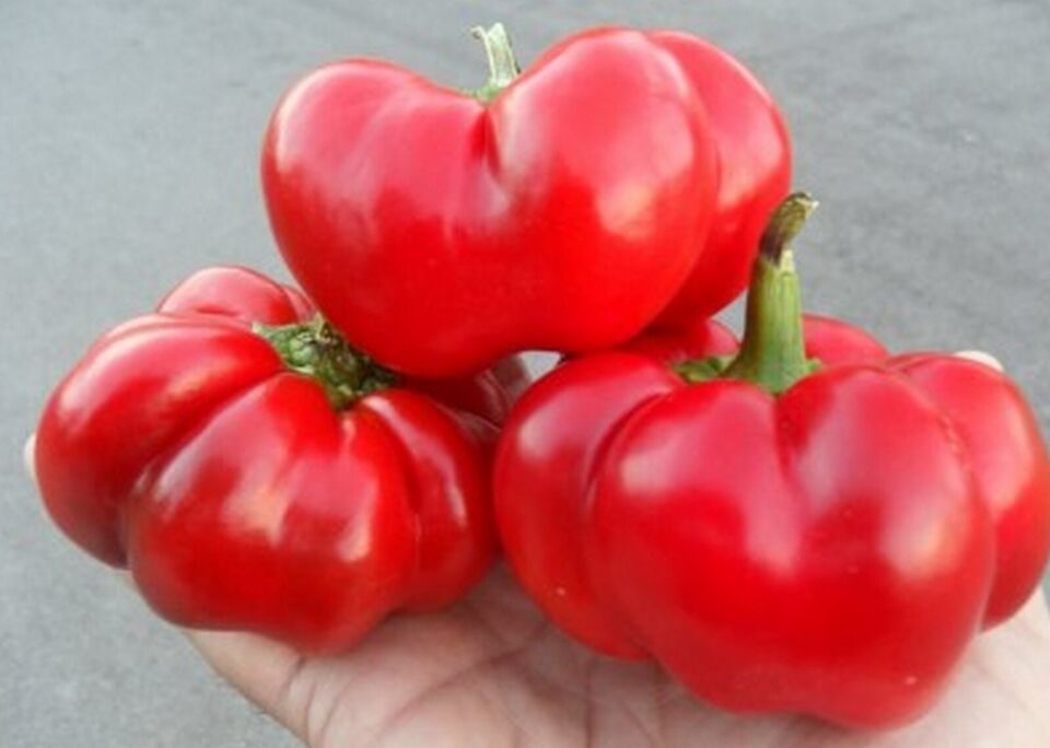 The Tomato Pepper is a small, heavy pepper iw a shape reminiscent of an heirloom tomato. Its thick walls that are twice a thick as most other peppers contribute to their weight. This gives them a meaty, yet crunchy texture and exceptional juiciness. The plants reach 2oe feet tall and are heavy producers.
