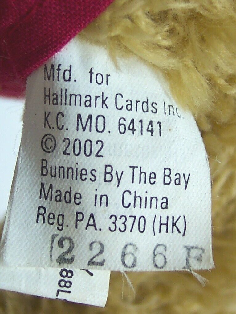 This is a VINTAGE BOBBY BOXER TEDDY BEAR IN RED BOXER SHORTS Valentine's Day Plush Stuffed Animal Toy. Made by Hallmark in 2002 as part of the Bunnies By The Bay Collection. It is 12 inches long from front to back. It is in Great condition. It is CLEAN. There are No tears, Stains or Defects. His shorts say, "From the bottom of my heart." Combine auctions to save on shipping. Please contact me if you need to make other payment arrangements. EAG