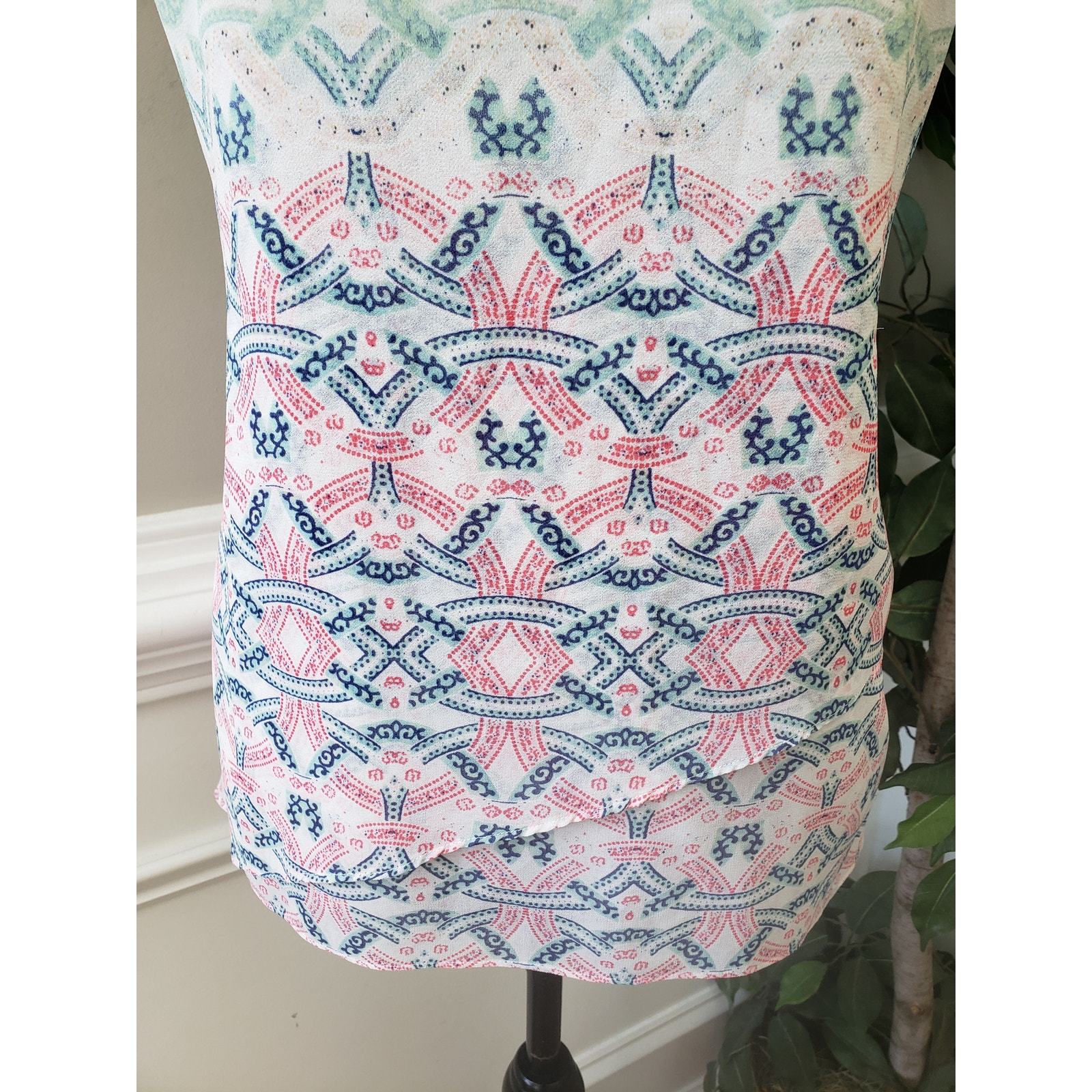 CAbi Tank Top Womens Size XS Multi Geometric Chiffon Layered Back Zip Sleeveless