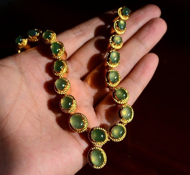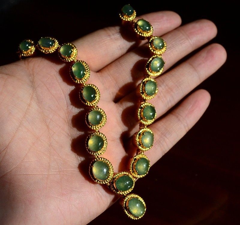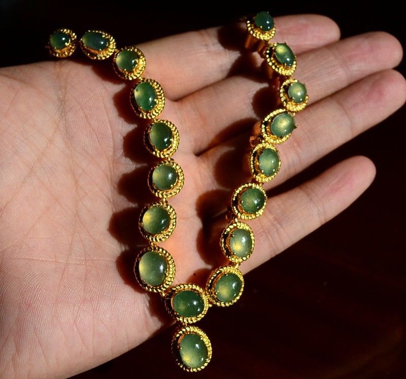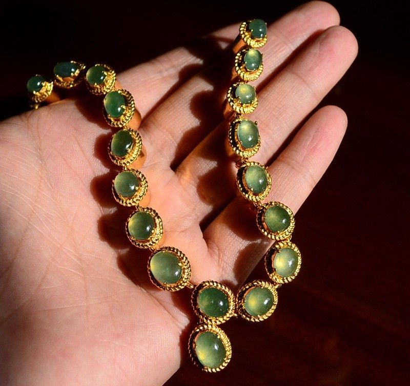 Certified Fine Natural Grade A Icy Translucent Jadeite Jade Necklace Set Oval Cabochon 18 Pcs