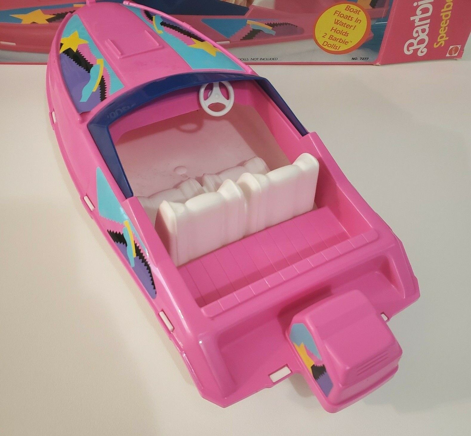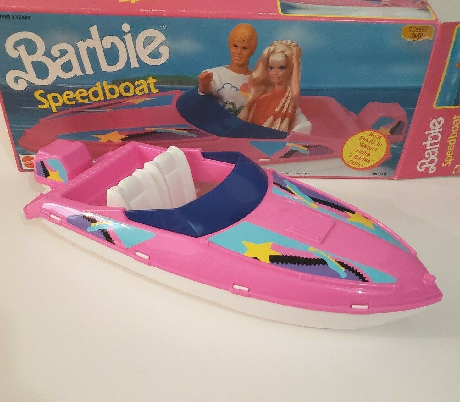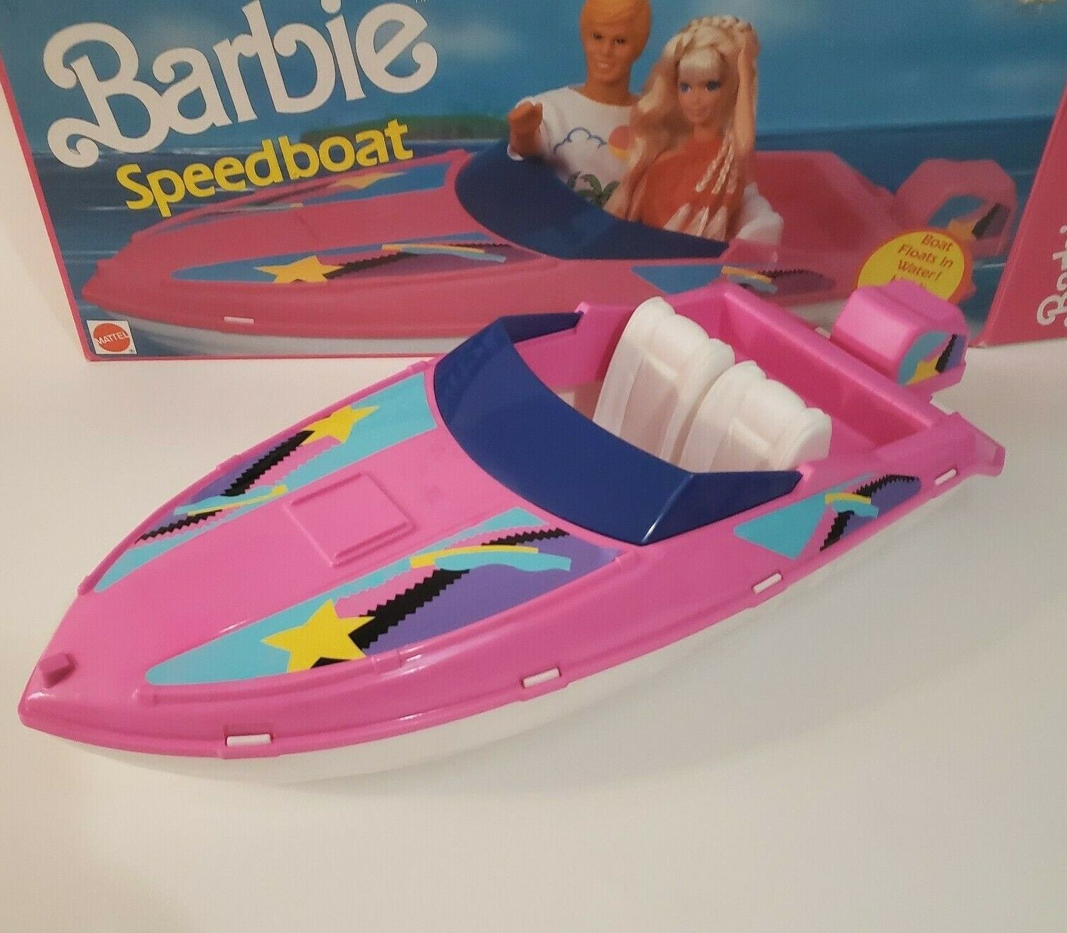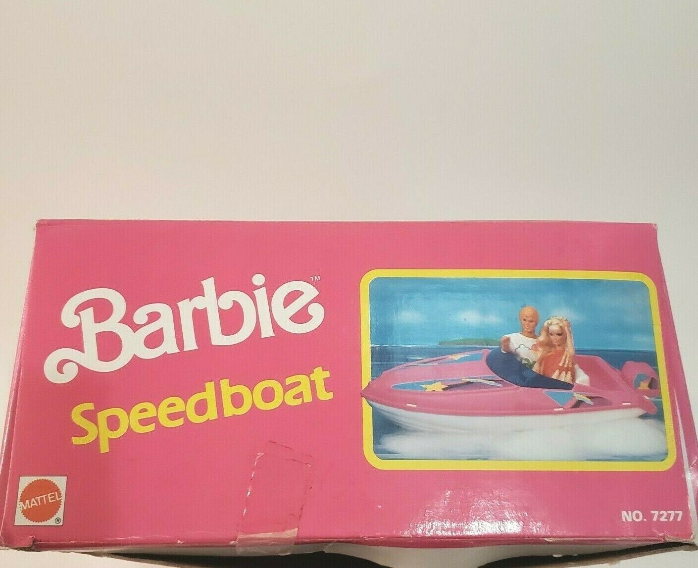 VINTAGE 1990 MATTEL ARCO BARBIE SPEEDBOAT PINK AND WHITE RACING BOAT # 7277 BOX