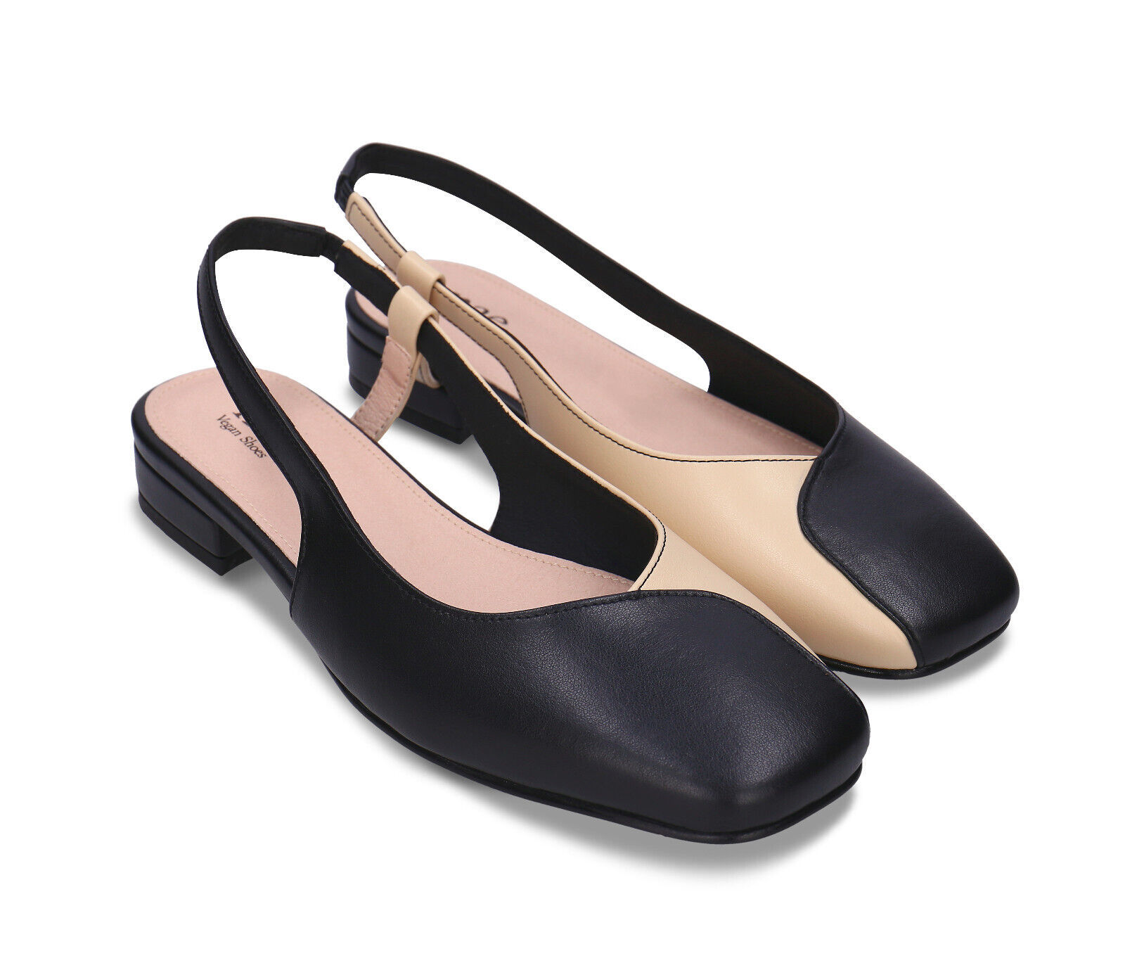 Women slingback shoes flats square toe on black beige vegan apple skin ballerina