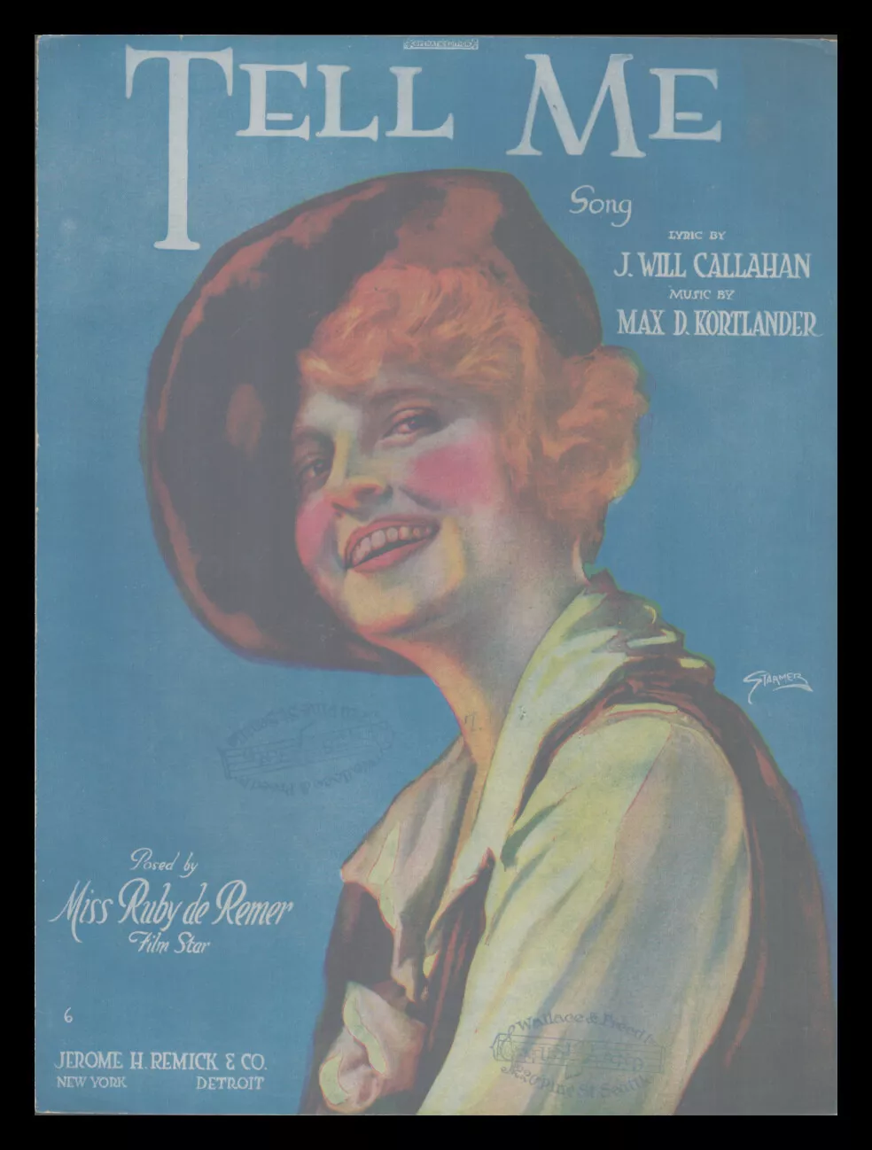 Folio-sized 1919 sheet music has heavy shelfwear with chipping of edges and separation of folds, although no music is missing.