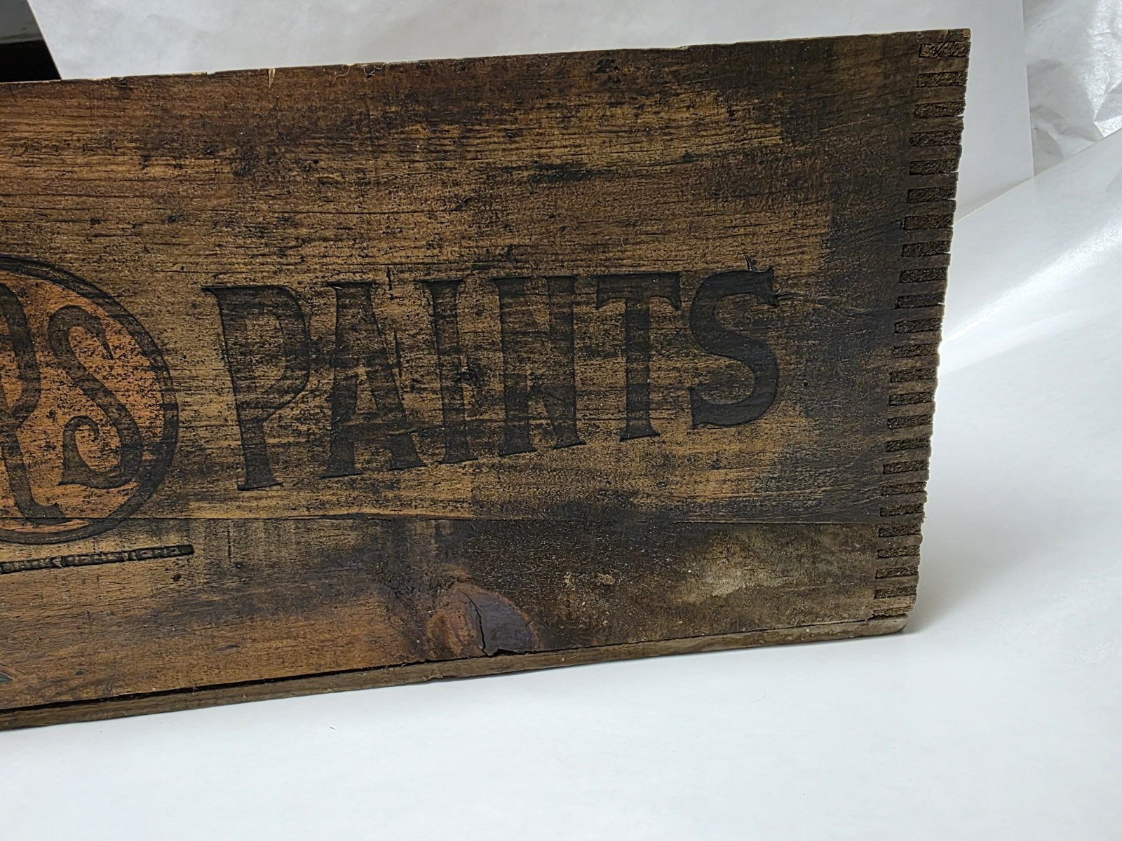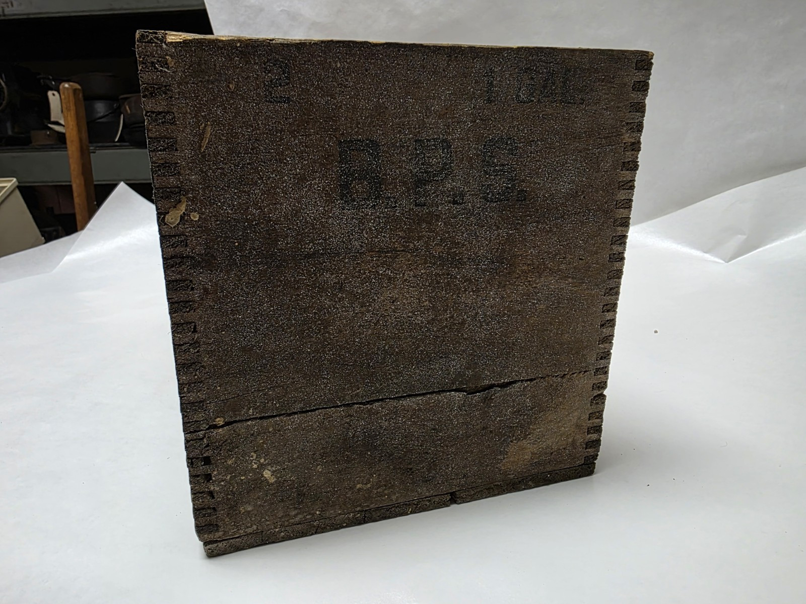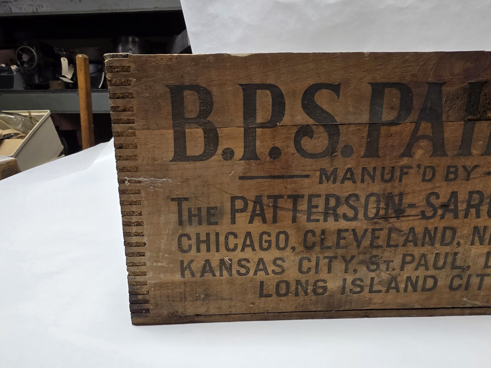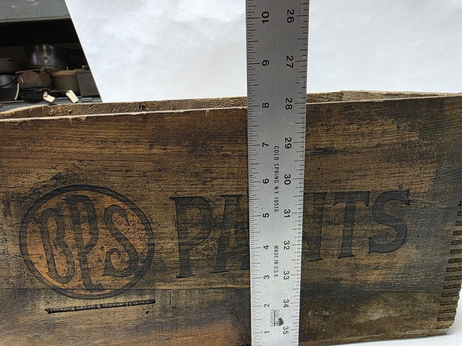 Vintage/Antique BPS Paint Wood Box in nice shape but one side the logo side was painted over I was able to be remove some of it but didn't want to get too aggressive with the removal so there is still a little still there.