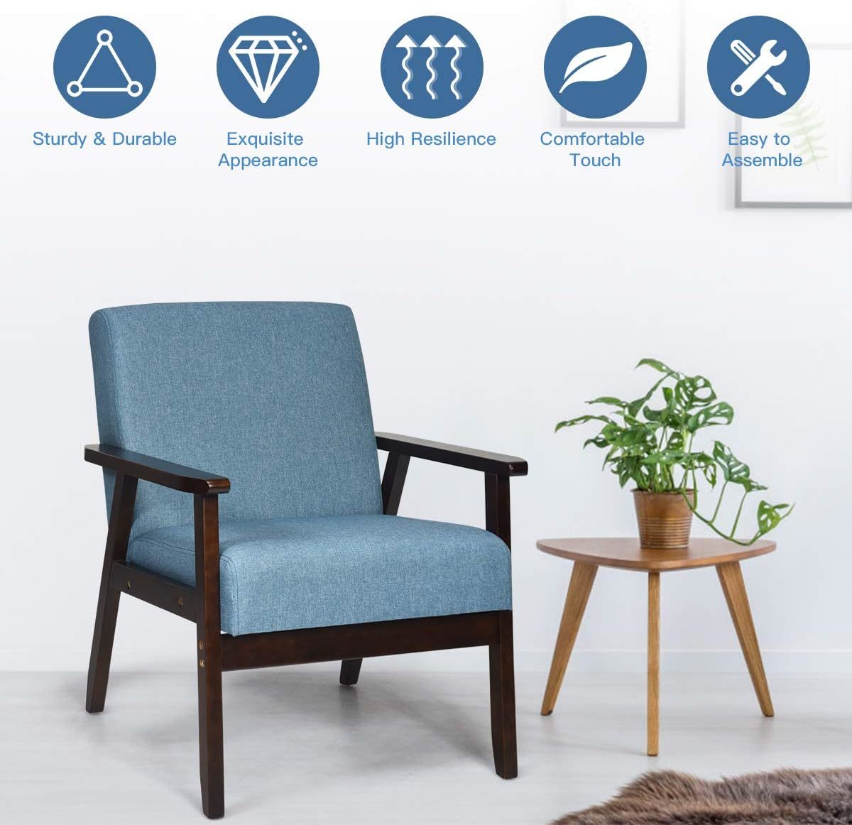 Giantex Mid-Century Modern Accent Chair, Retro Fabric Armchair, Solid, 1, Blue