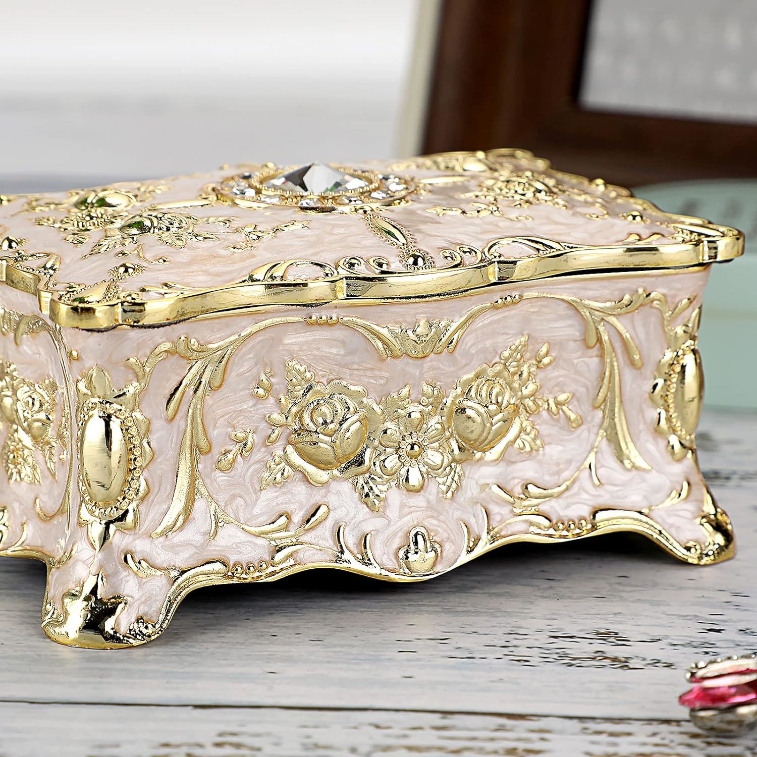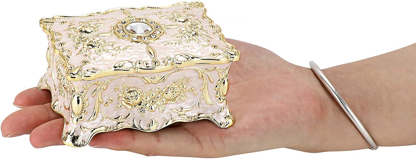 Hipiwe Vintage Jewelry Box, Small Enameled Trinket Box Organizer Rectangular