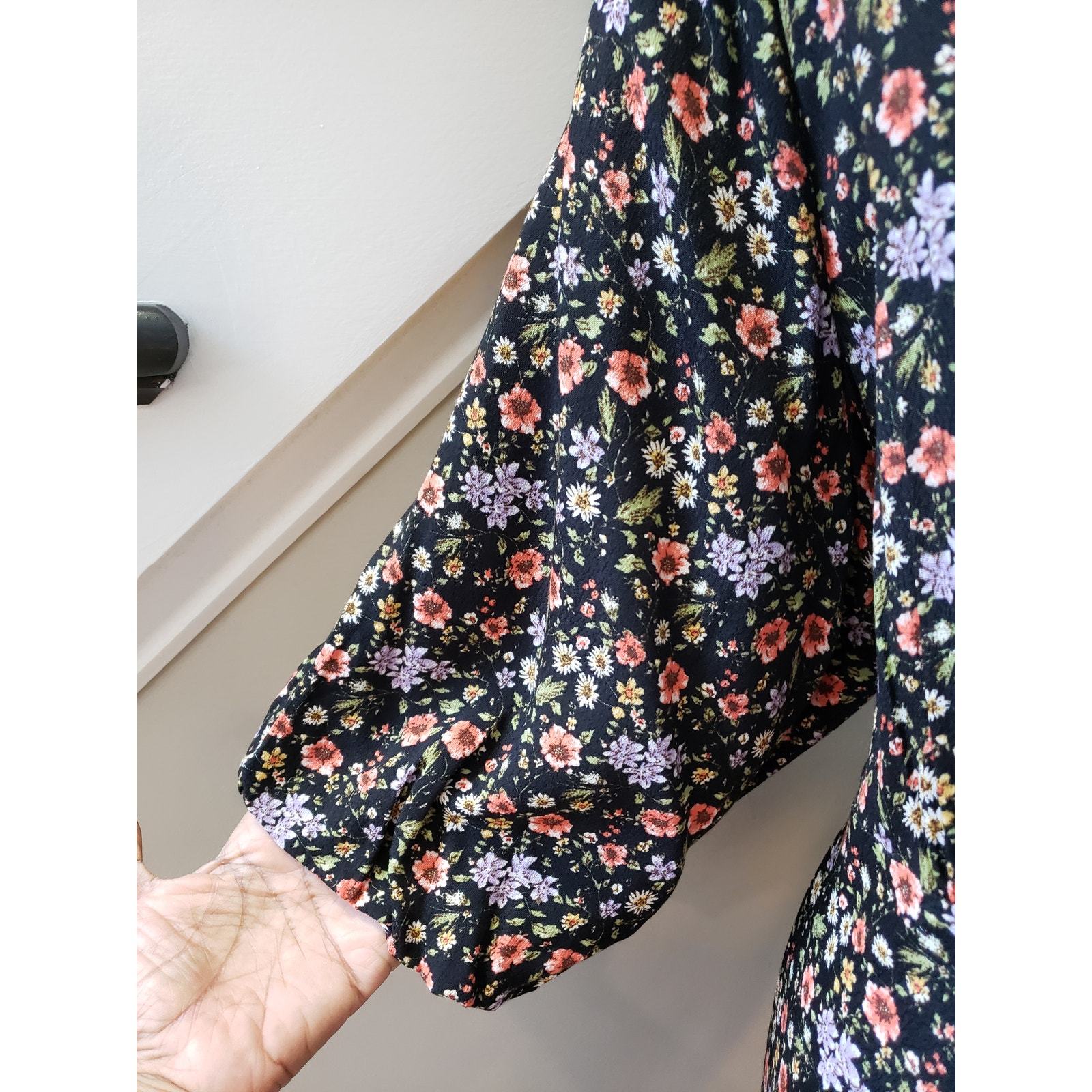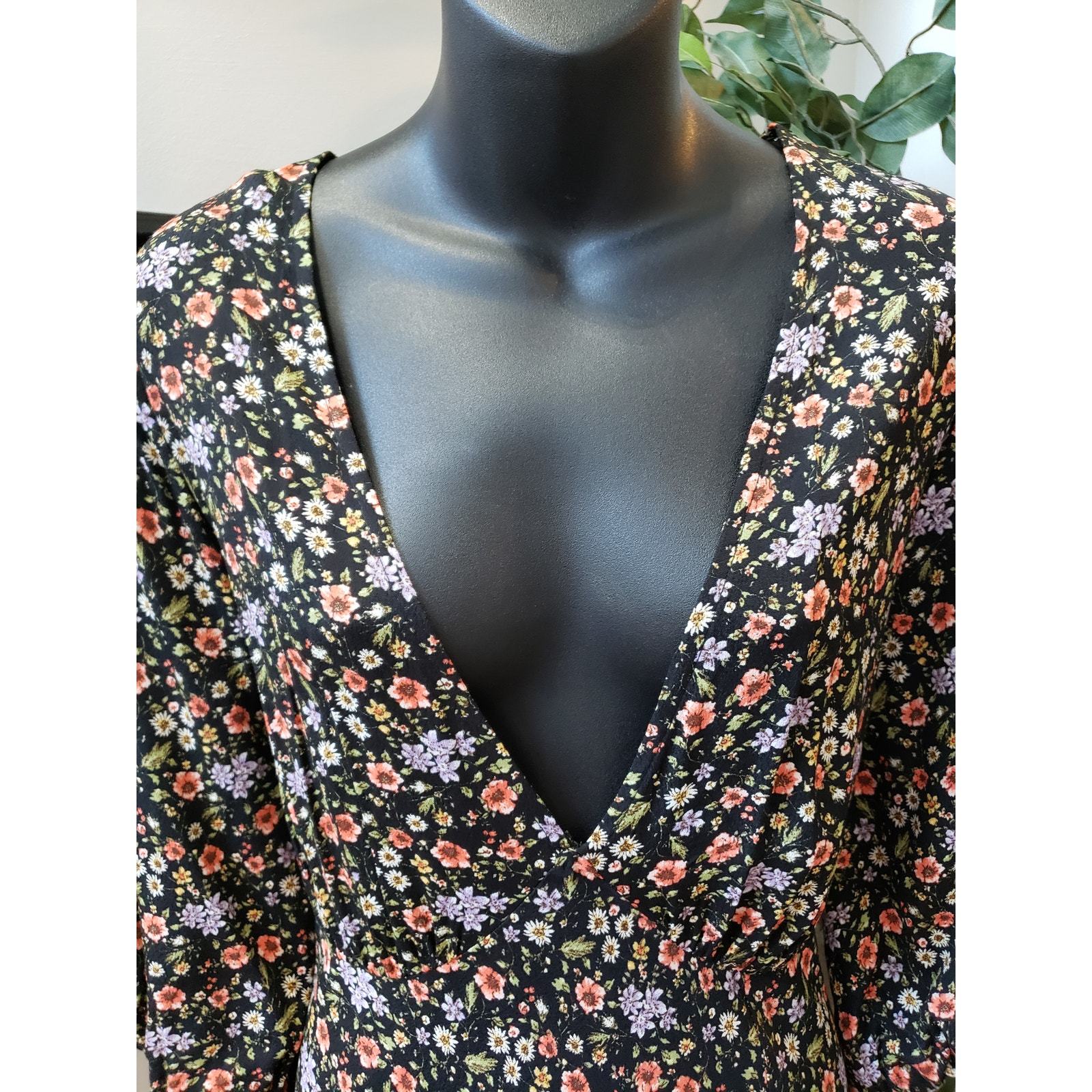 Forever 21 Long Maxi Dress Womens 1X Black Floral High Thigh Slit Plunge V Neck