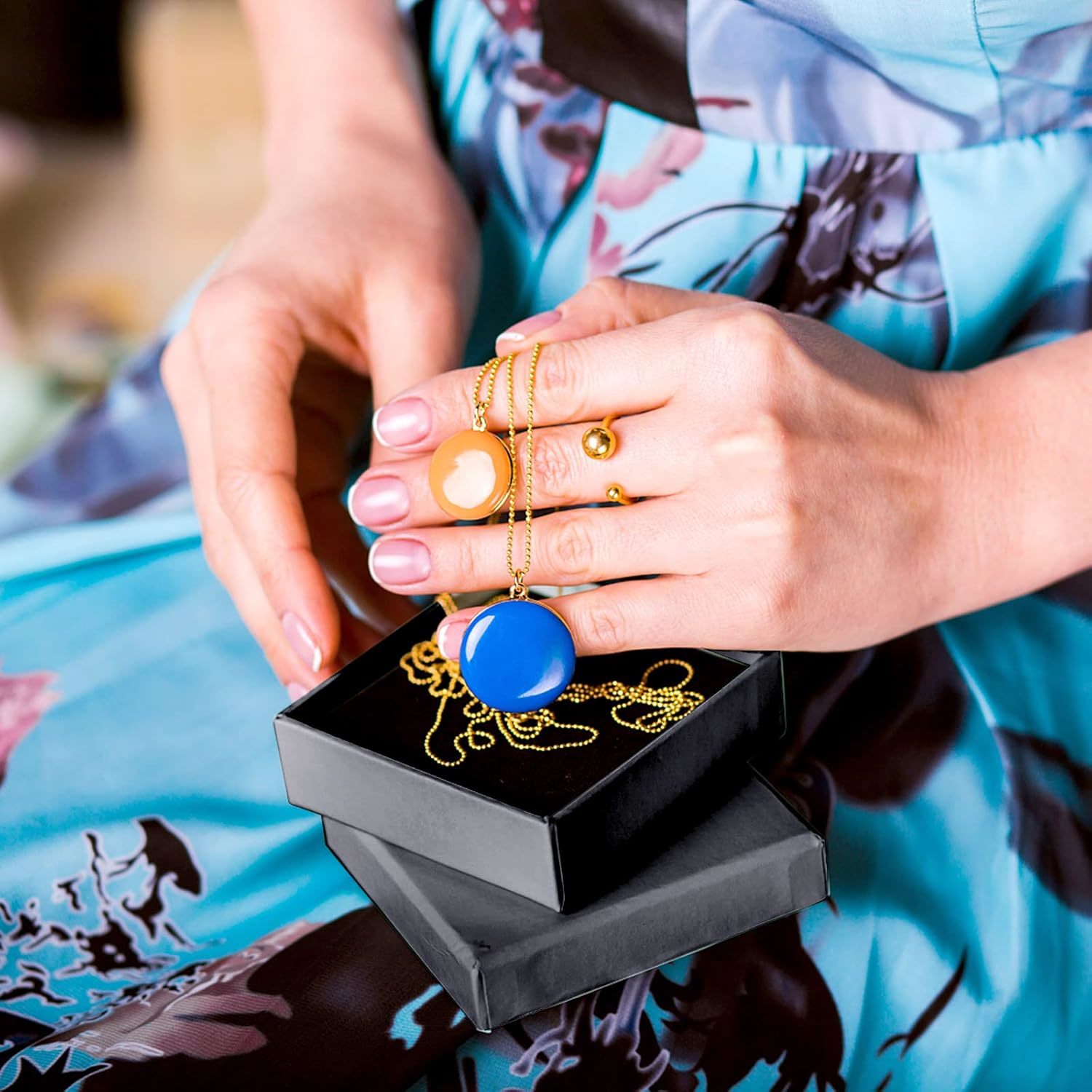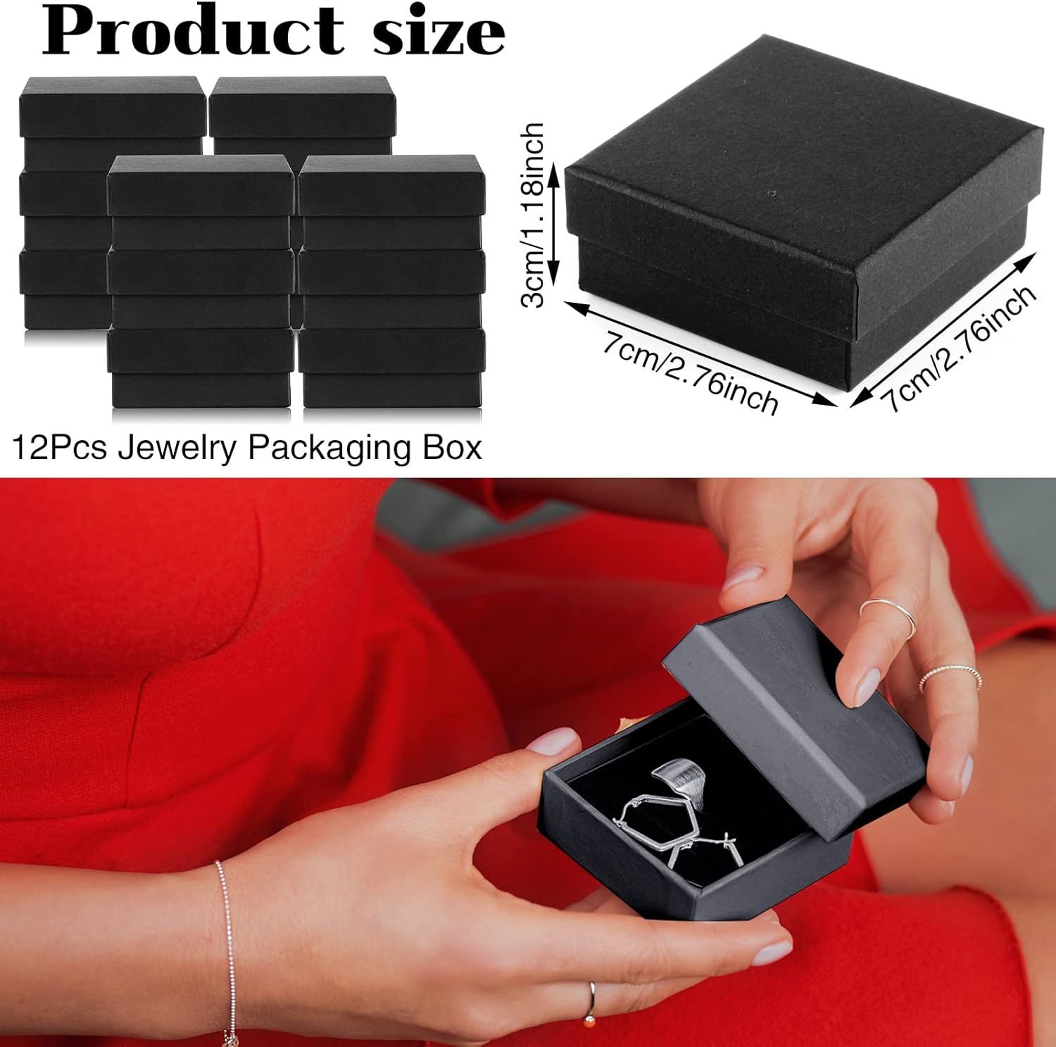 ?Package Include?You will receive one package include 12pcs black jewelry gift boxes, the detail size is 2.76*2.76*1.18inch, the inner size is 2.71*2.71*1.18inch ?High Quality?Our jewelry gift boxes made of premium cardboard material without no-toxic and smell, excellent and workmanship, sturdy and durable ?Jewelry Boxes?Give your jewelry a perfect home, let it stand out and accept your love, collect the most beautiful memory and let the good times stay here ?Great Christmas Gift?This jewelry boxes packaging is a good christmas gift for you friends and family, kraft cotton filled jewelry box, can not only make our jewelry look better, but also keep our jewelry tidy ?Widely Use?This box not only use for necklace earring bracelet, but also use for storage box, like to store craft parts, sewing accessories, metal parts etc