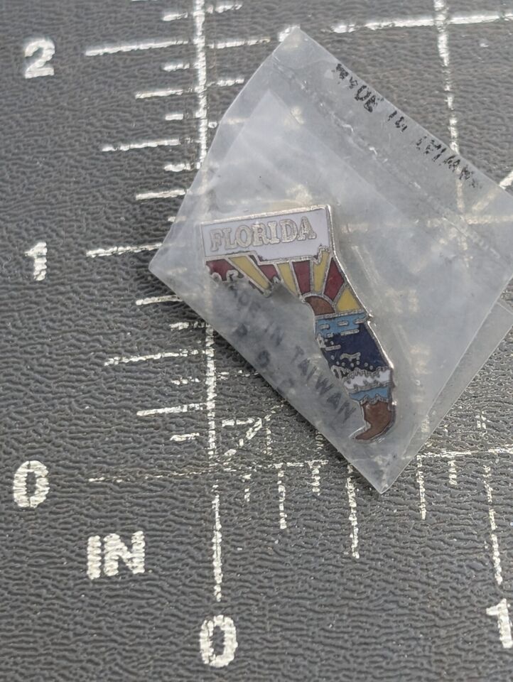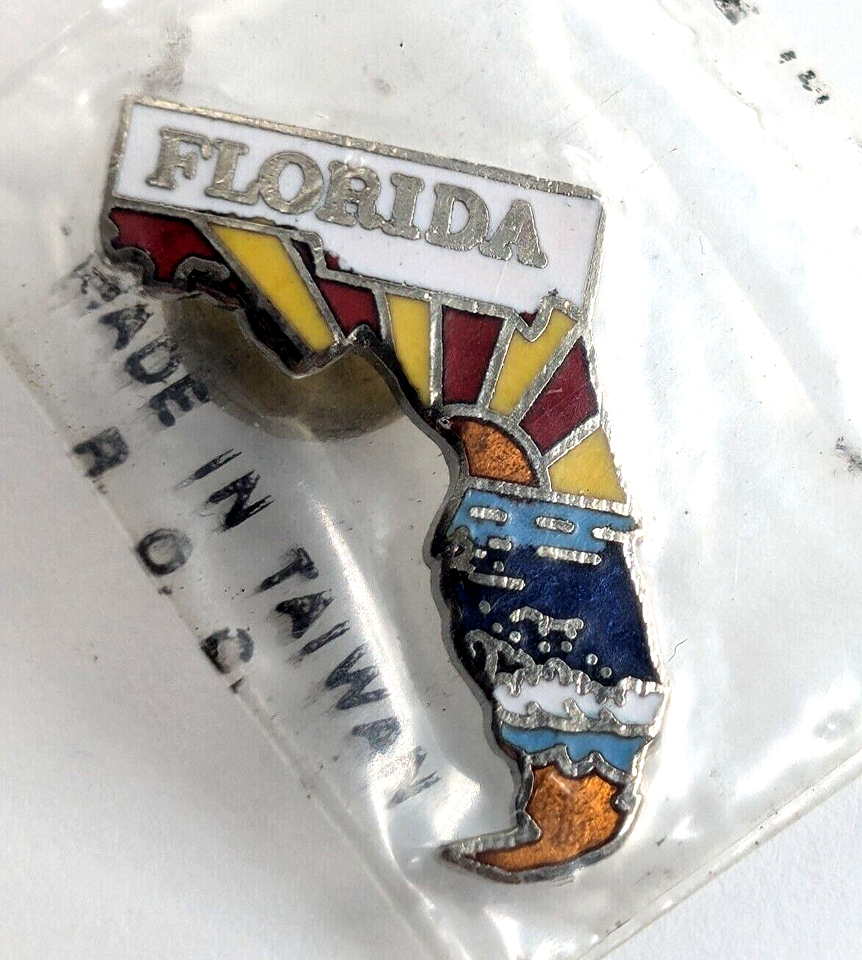 VTG Florida State Map Sun Ray Ocean Beach Enamel Pin Souvenir Mafco Blue Red...