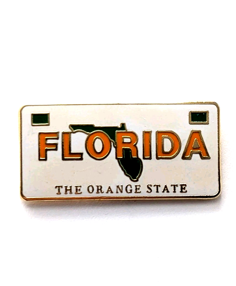 VTG Florida The Orange State Map Licence Plate Design Enamel Pin Travel Souvenir