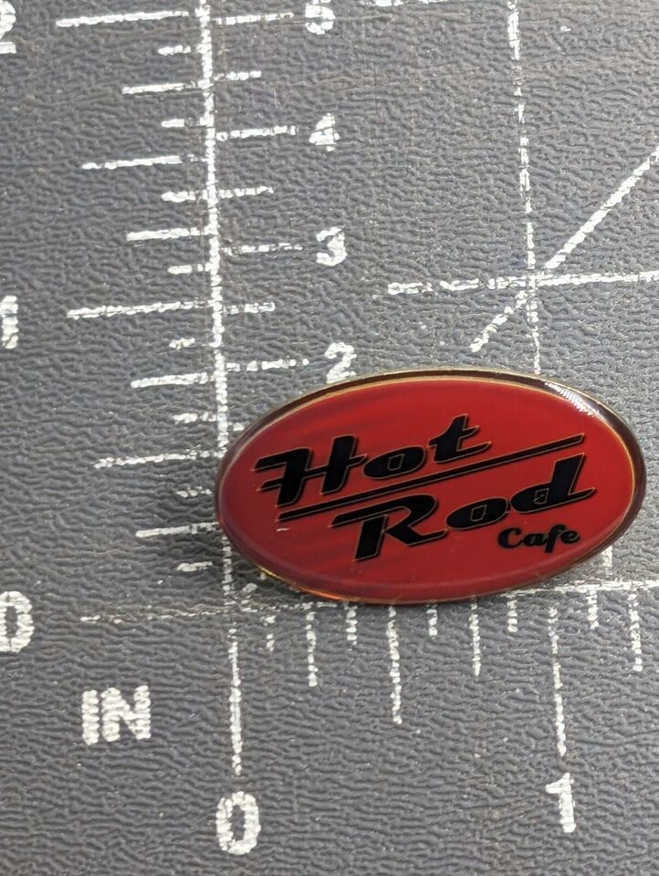 VTG Hot Rod Cafe Post Falls Idaho Oval Red Black Logo Sign Lapel Pin Advertise