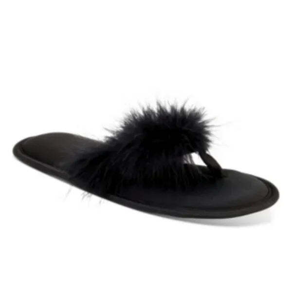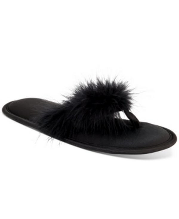Fluffy and fun, these slide slippers from INC International Concepts deliver playful style. Size: S (5-6); M (7-8); L (9-10); XL (11-12) Special Features: Feathers at strap Texture: Woven Upper and lining: polyester; trim: feathers; outsole: EVA with textile flocking Spot clean only Imported