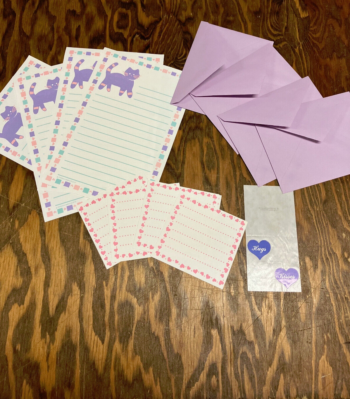 Vintage kitty hearts stationery lined writing paper with envelopes memo paper
