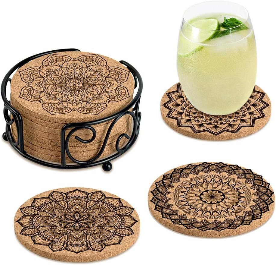 Drink Coasters Made Of Absorbent Cork And A Holder Are Excellent Housewarming