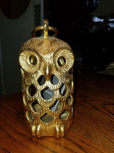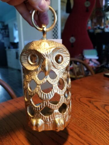 Saks Fifth Avenue Brass Owl Candle Holder Hanging Lantern MCM Boho Tea Light NWT