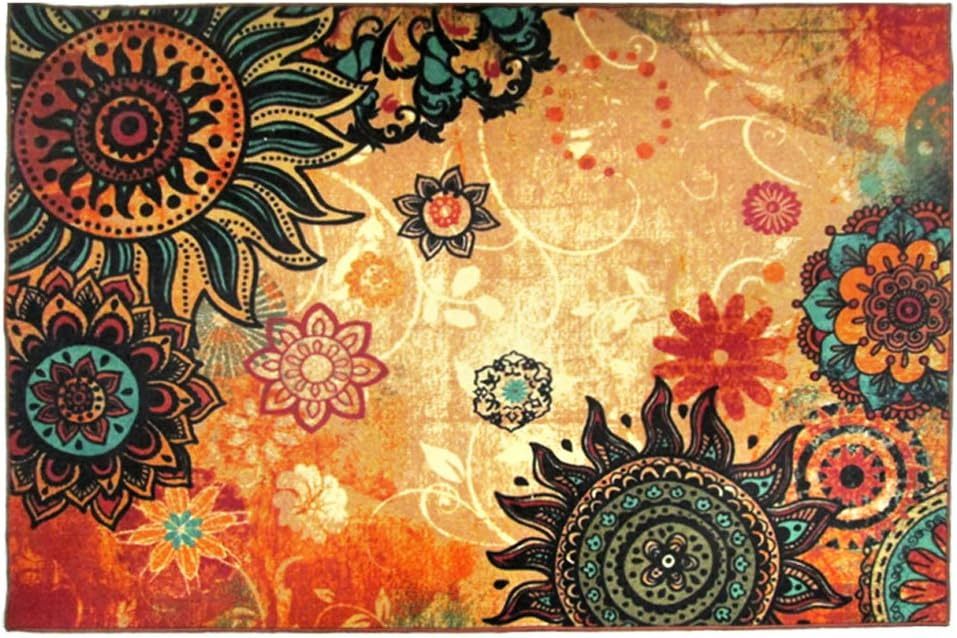 Contemporary Boho Retro Style Abstract Living Room Floor, 52"X75" Lotus