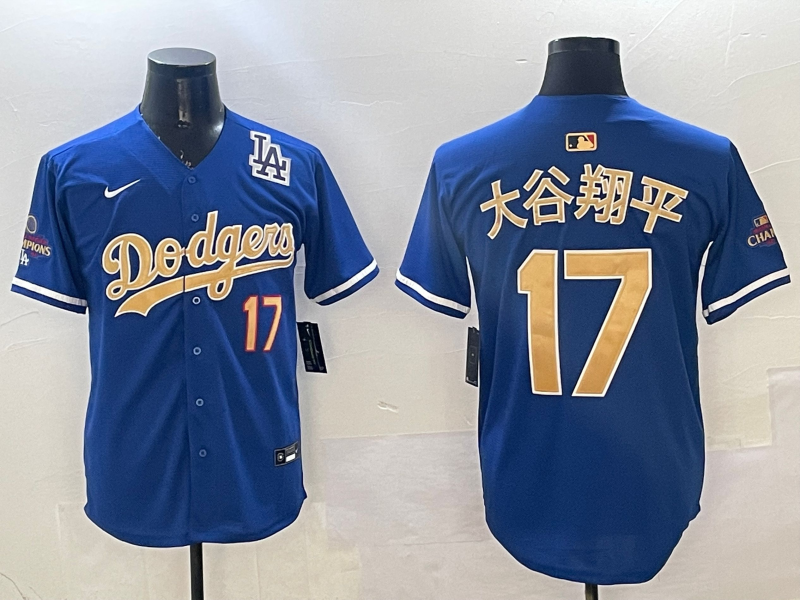 2025 Men's Shohei Ohtani #17 Dodgers Jersey Gold Royal Kanji Baseball Uniform