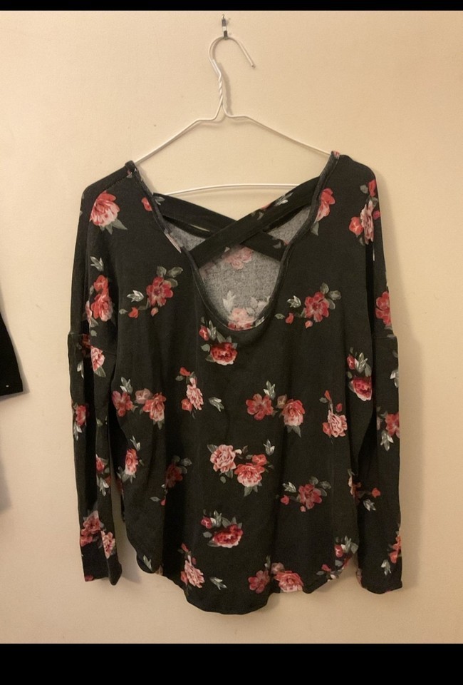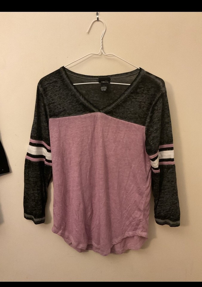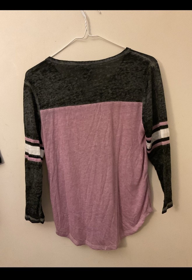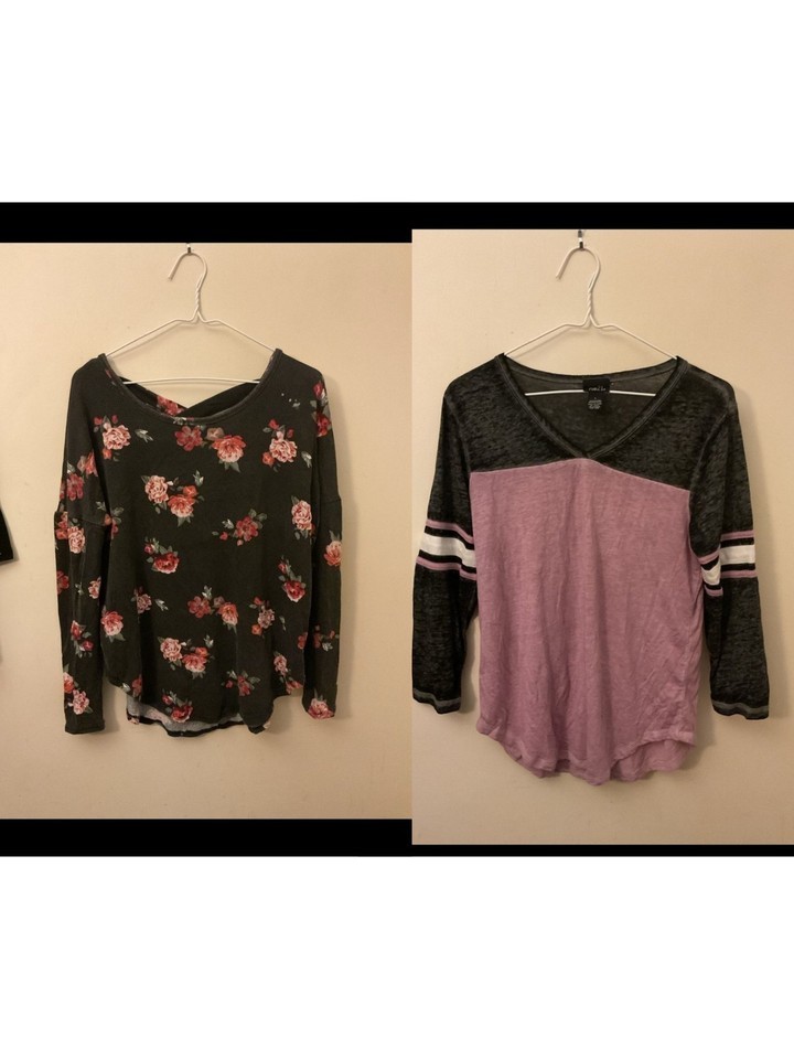 Both are in great condition. Purple and gray top is Pit to pit 15? shoulder to bottom 26? long. The black top is