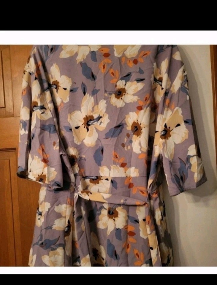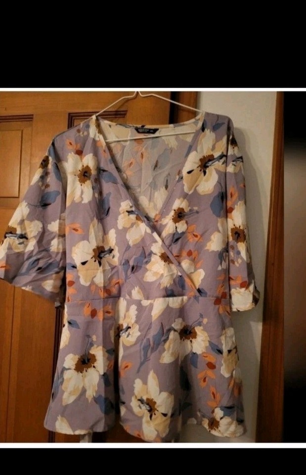 I believe this top is still brand new! Has a silk feel! Has string to wrap around the front or back! Looks to run small pit to pit 22", waist 19" , neckline to bottom 17.5", shoulder to bottom 25.5"