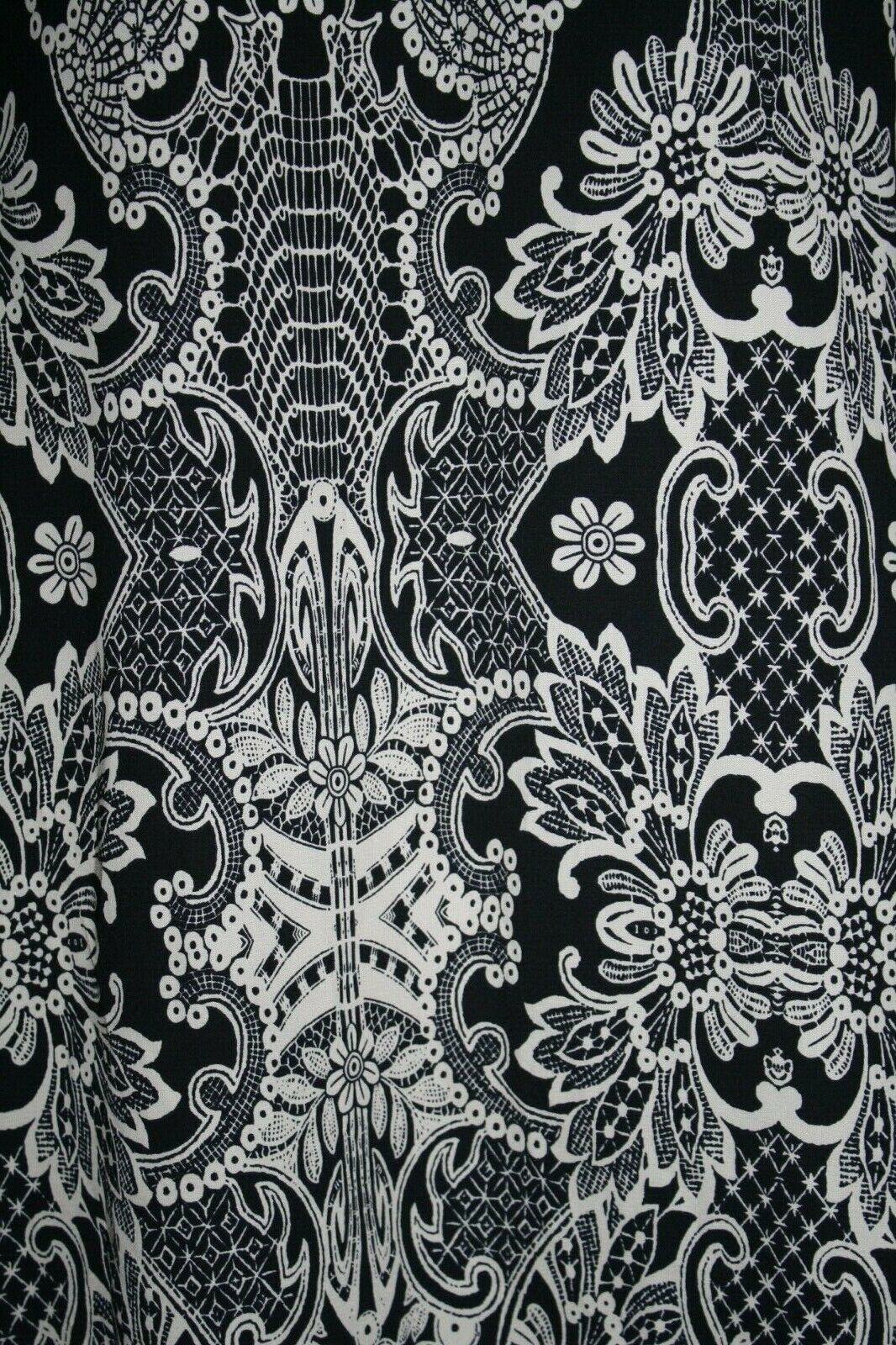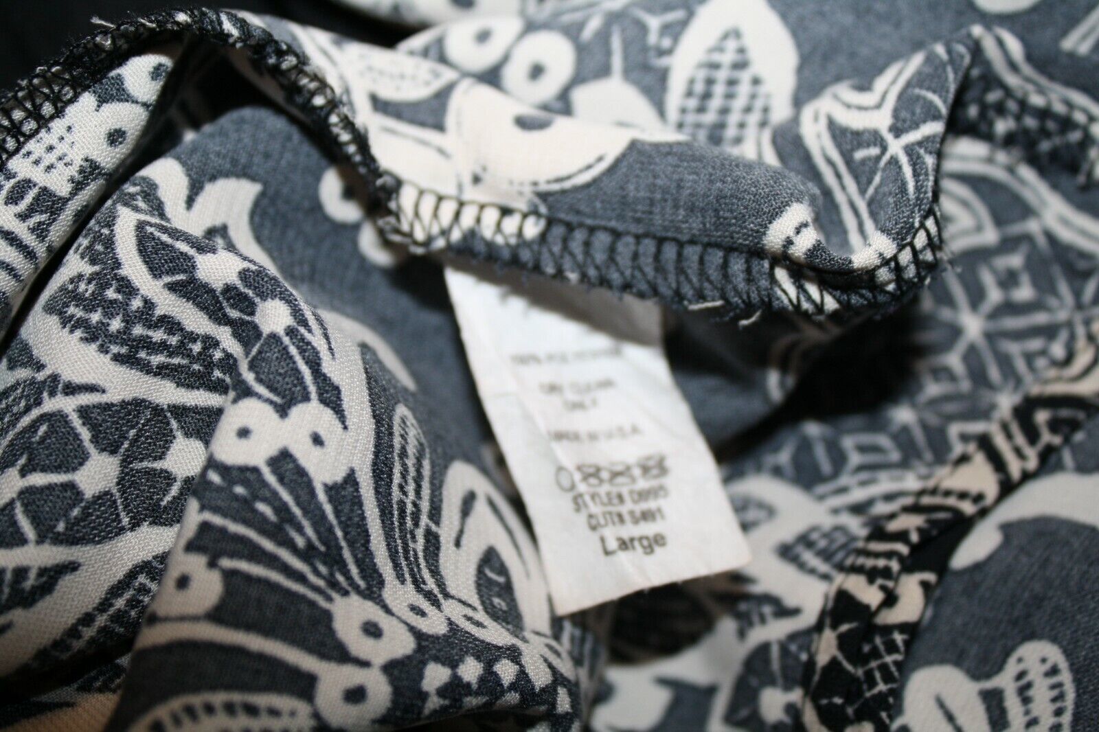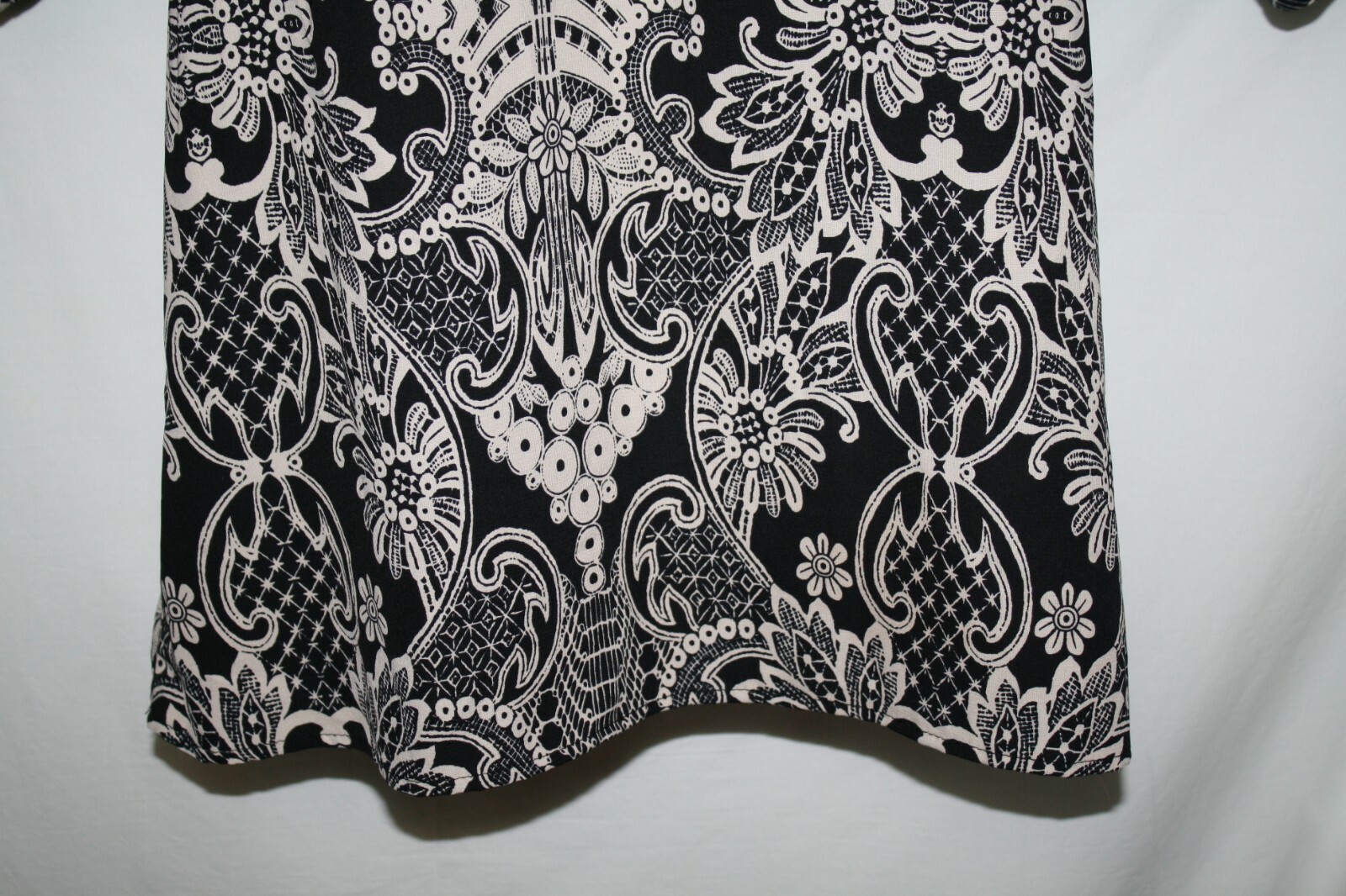 Sage Brand Misses LARGE Dress Black and Beige Floral Gold Metallic Flat Beaded V Neck 3/4 Sleeves, Made in USA