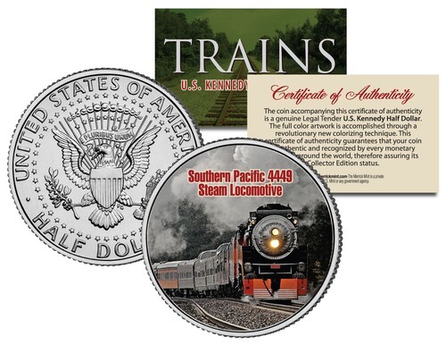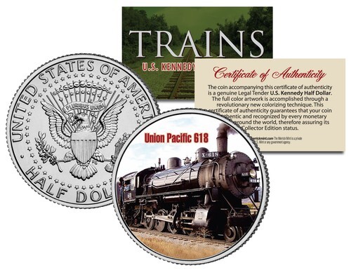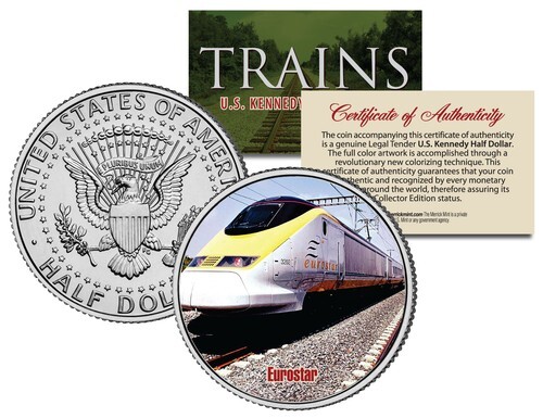 Here Here is your chance to own a beautifully colorized JFK Kennedy Half Dollar U.S. Coin featuring one of the most popular Trains in the world, in the Limited Edition Train Coin Series. Each coin comes in a premium coin capsule with a full color Certificate of Authenticity. This official high-quality genuine Legal Tender United States Coin has been colorized using a unique multicolor authentic process. Colorizing coins involves the unique application of special inks directly to the surface of a coin using a unique and painstakingly multicolor coin process, that achieves a level of detail, color saturation, and durability that is #1 in the industry. The result is an everlasting colorized coin collectible of ultra-high quality.