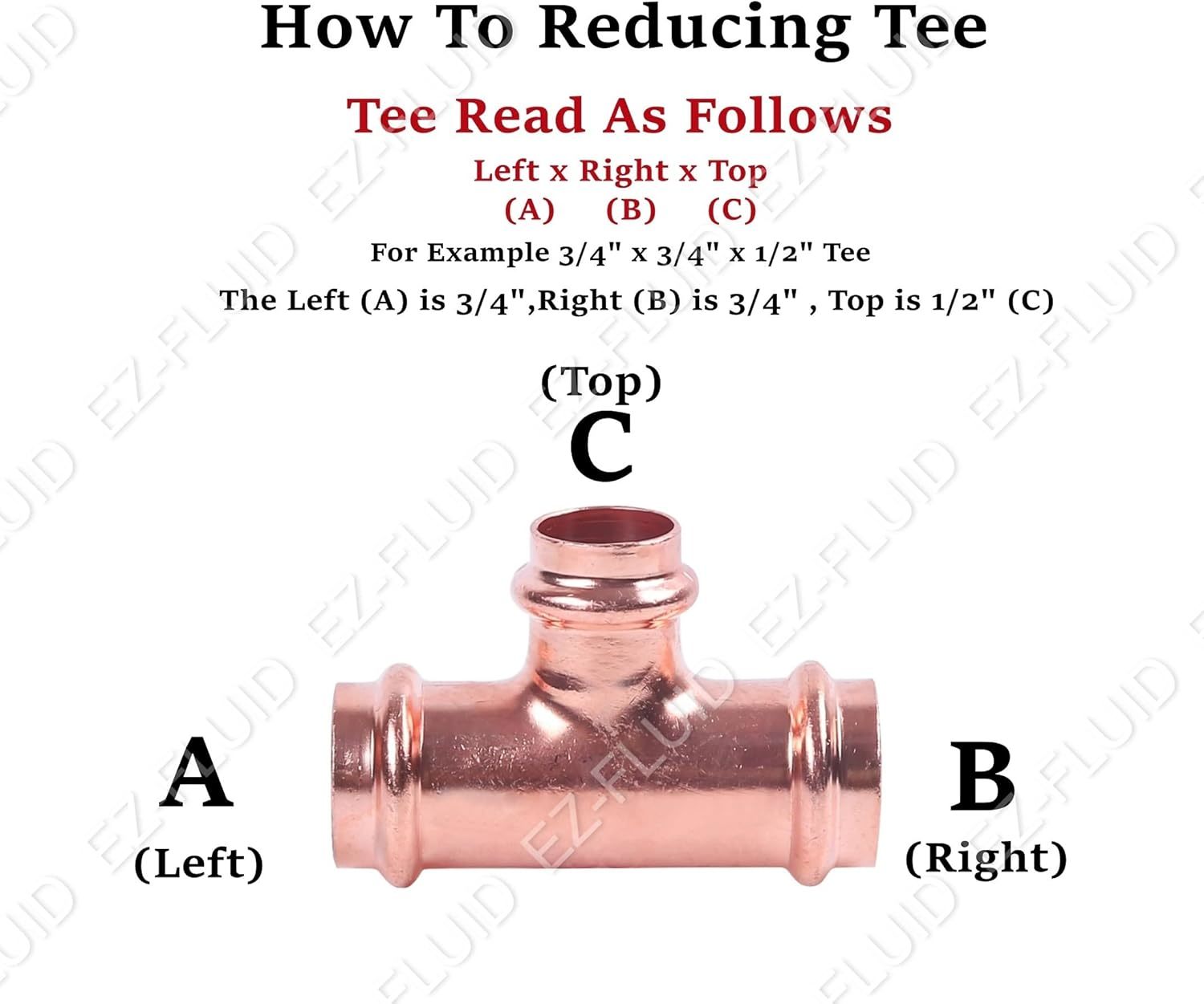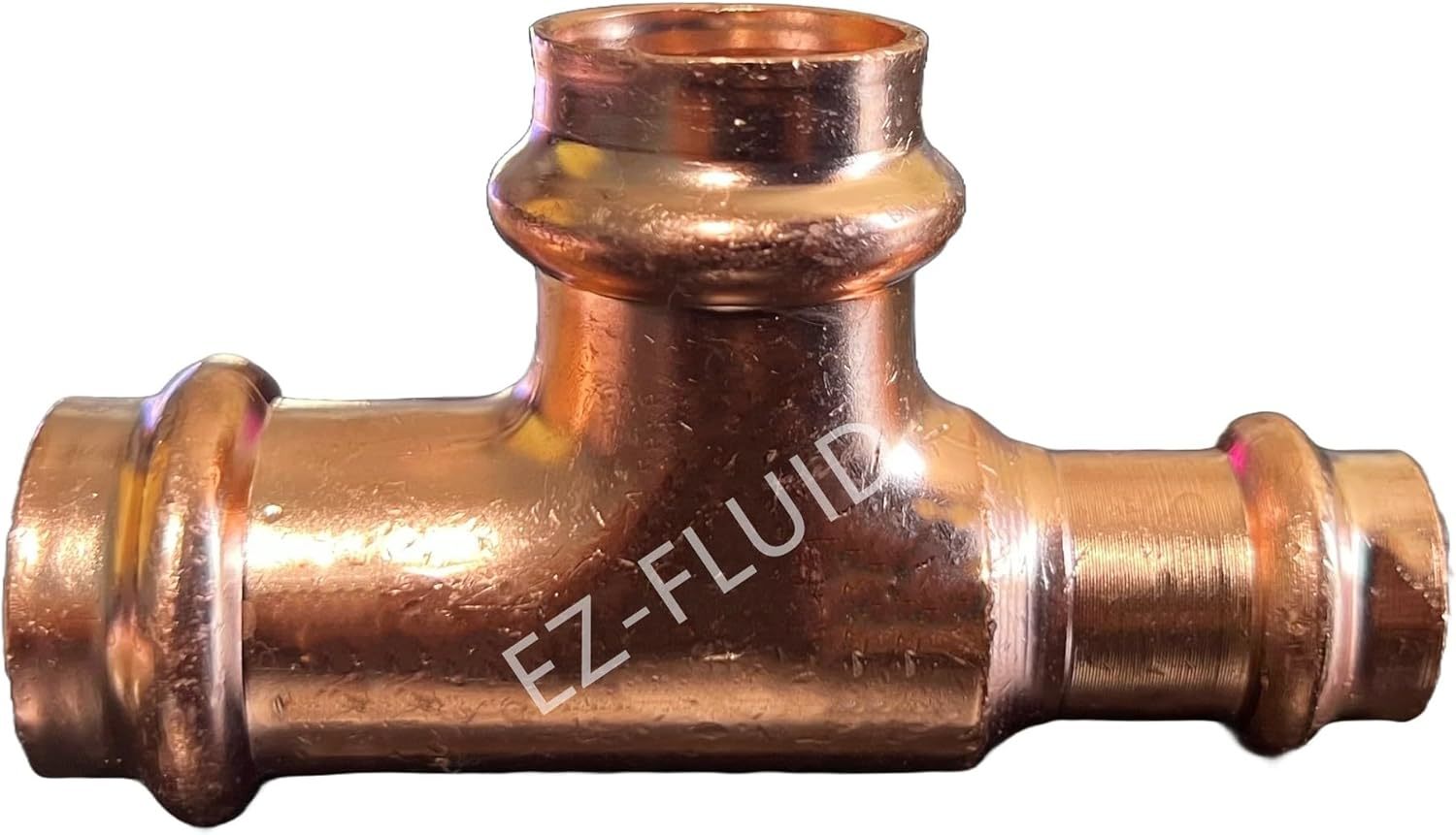 EZ-FLUID Plumbing Lead Free Copper Press Reducing Tee Fitting ,Press X Press 3 Ways Copper Tee Pressure Copper Fitting Heavy Duty Copper Press Copper Three Way Reducer Tee Fittings,Press Copper Fitting Connection Works on Type M,L or K Copper Tubing EZ-Fluid Press Pressure Copper Pipe Fittings Made of Lead Free Copper 1/2? to 2? fittings are compatible with Ridgid tool and Milwaukee tool and Nibco tool, The 2-1/2? to 4? are compatible with Ridgid tool and Milwaukee tool only. For Residential, Commercial ,Plumbing,Potable Water And More, Potable Drinking Water Safe; NSF-61 Approved .