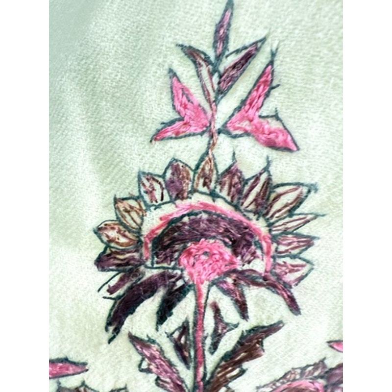 Civil War Era Hand Embroidered Purple & White Embroidered Wool Shawl 1860S