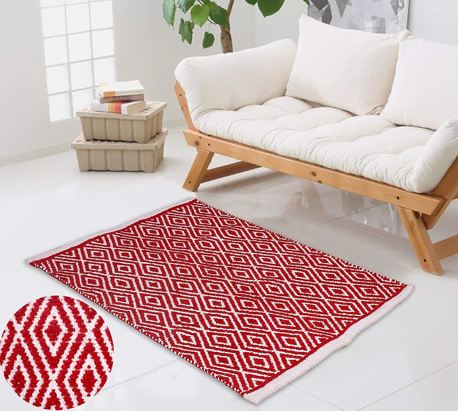 The Beer Valley Cotton Diamond Rug 21 X 34 Inches - Red,, And Bathroom.