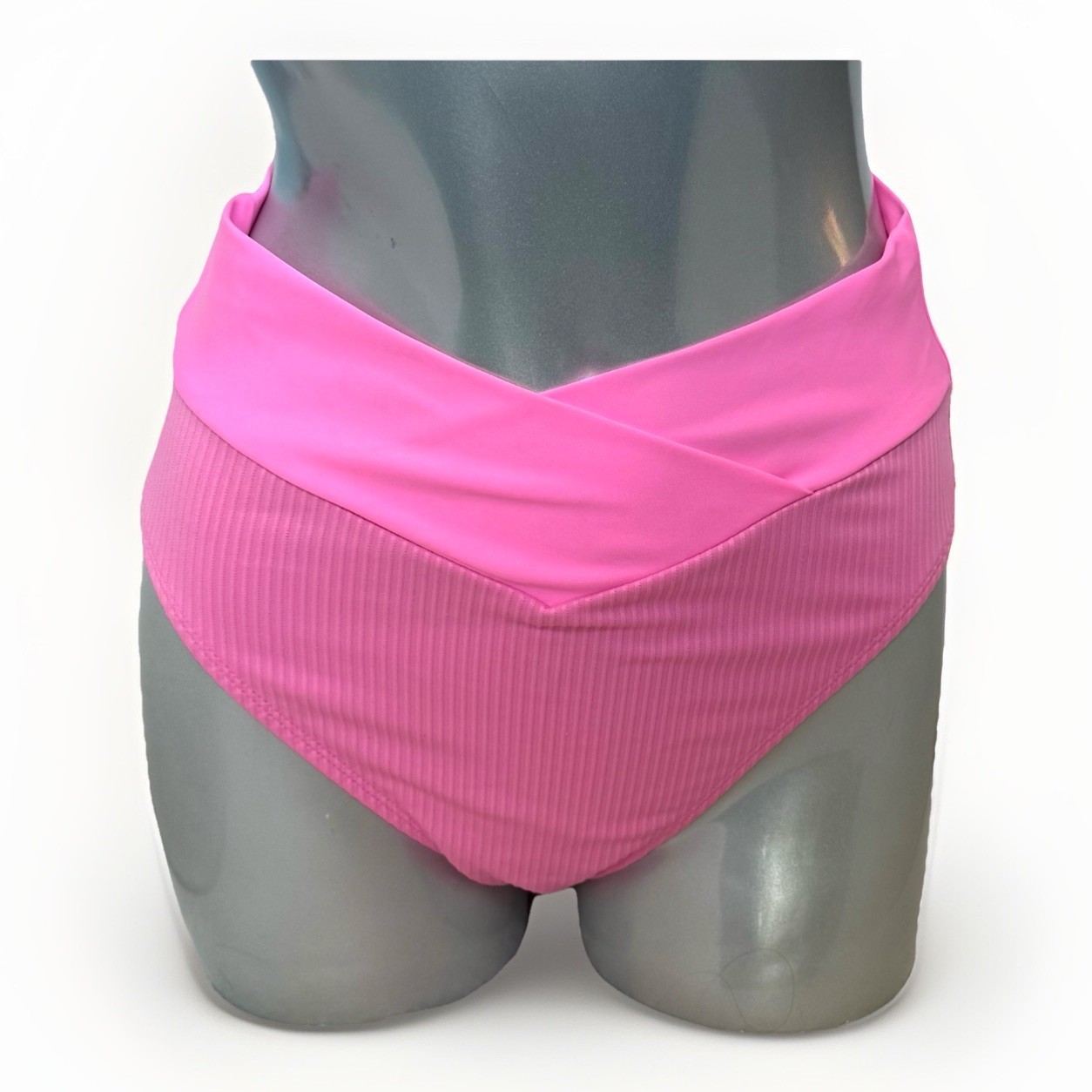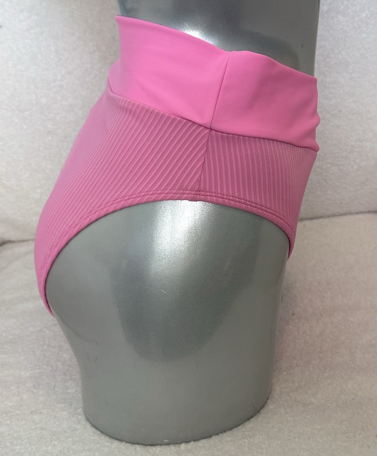 Salt Cove Swimsuit Bikini Bottoms High Waist Size Large Candy Pink Ribbed NEW