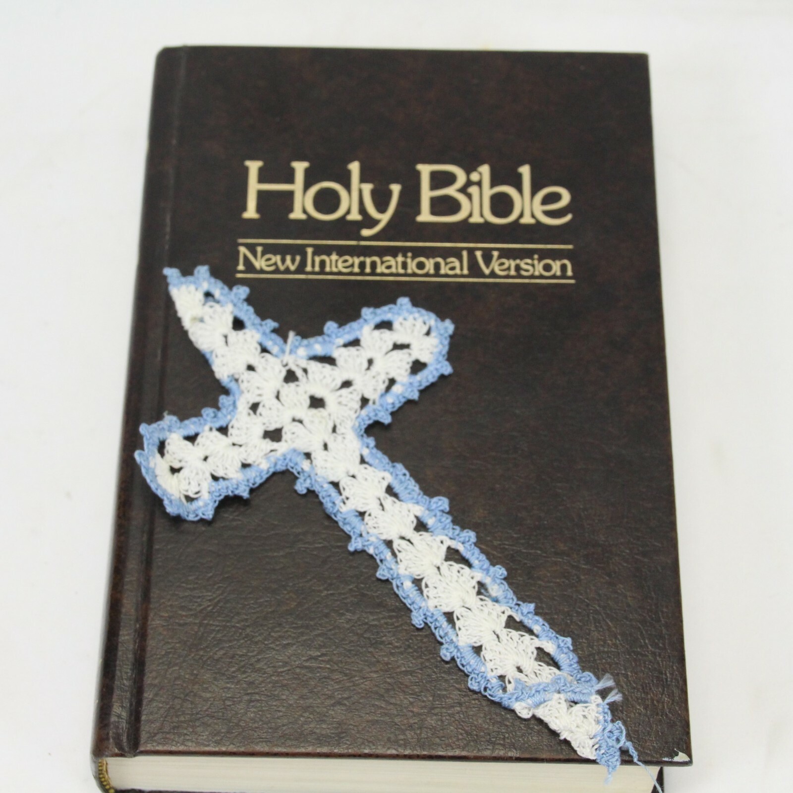 Holy Bible New International Version Brown Leather Zondervan 1979 Crochet Cross