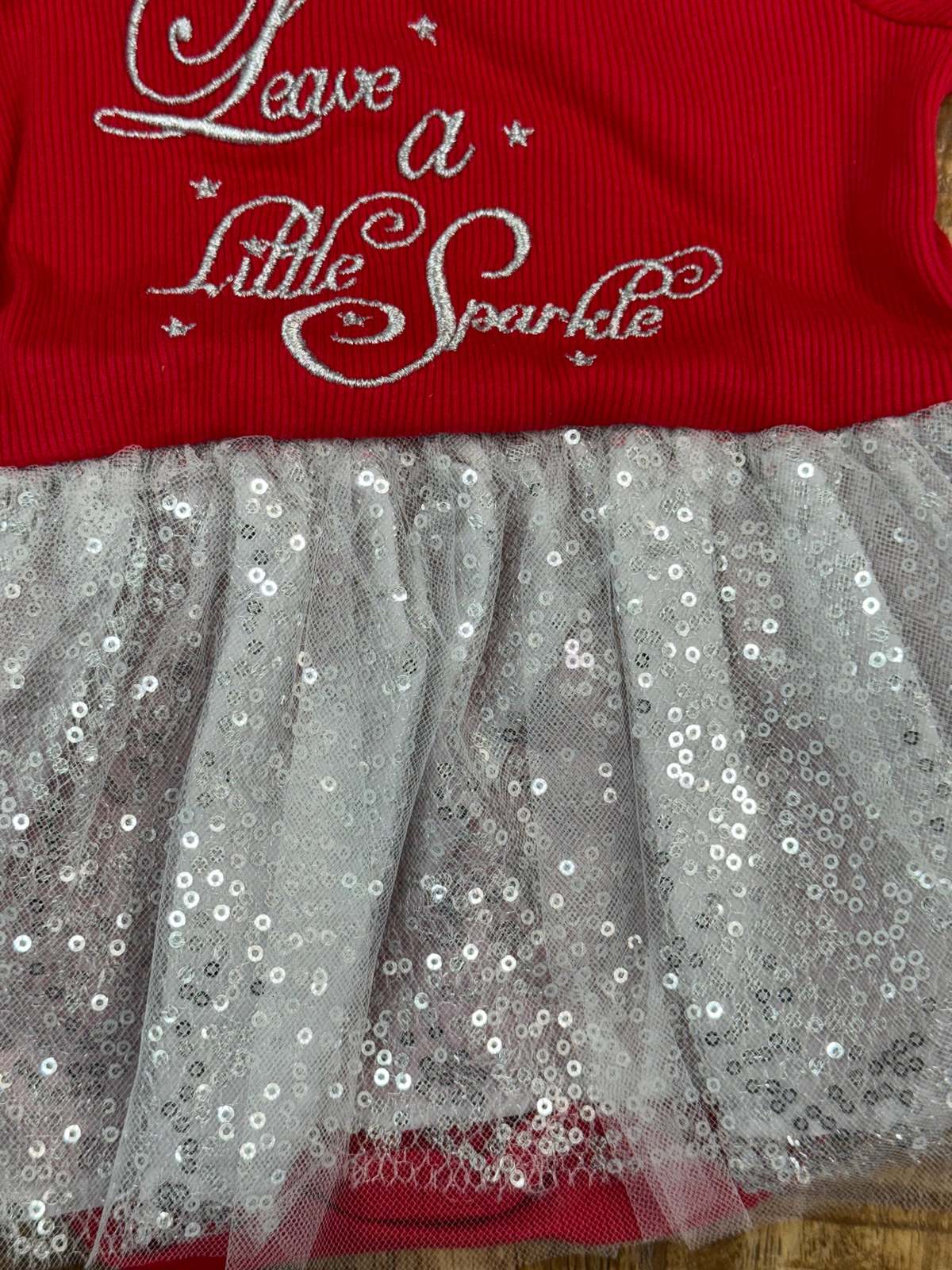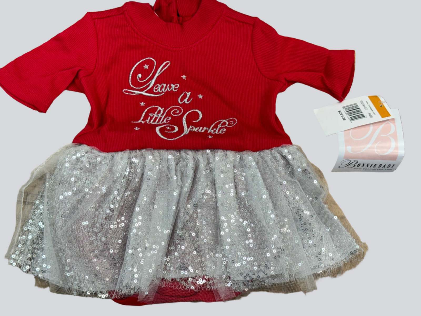 Bonnie Jean Little Girls Christmas Holiday Red Silver Sparkle Tutu Dress, 3 MO