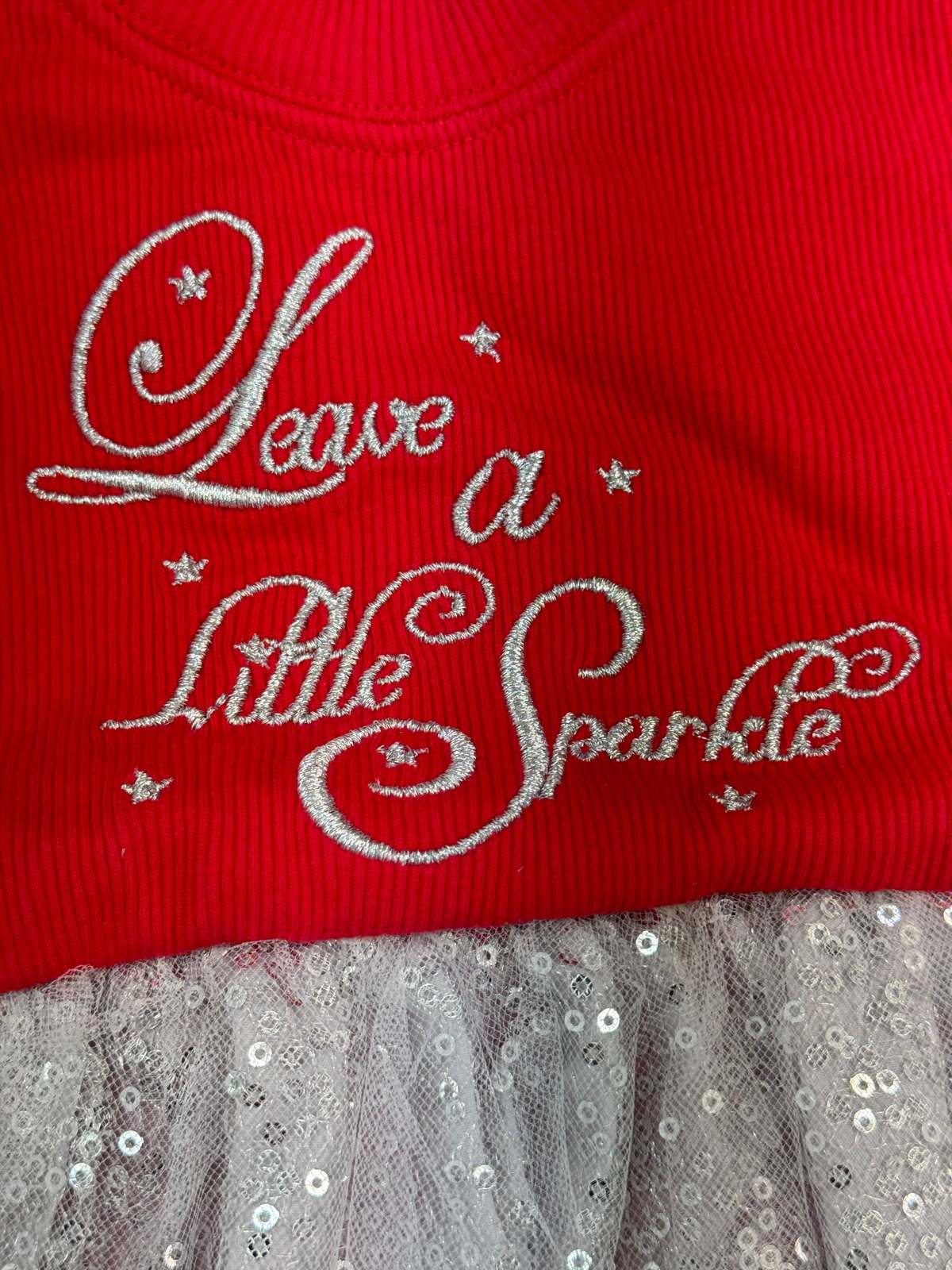 Bonnie Jean adds a Holiday-inspired design to this glittery bodysuit dress. Bonnie Jean dress/bodysuit combo Cotton jersey construction (100% cotton) Tulle overlay skirt with sequined underlay (100% nylon) Silky skirt lining (100% polyester) Ribbed...