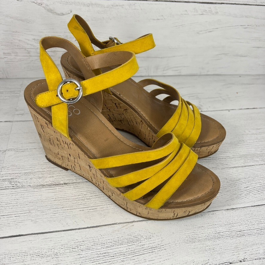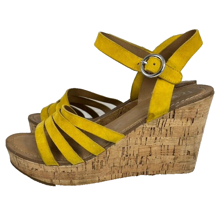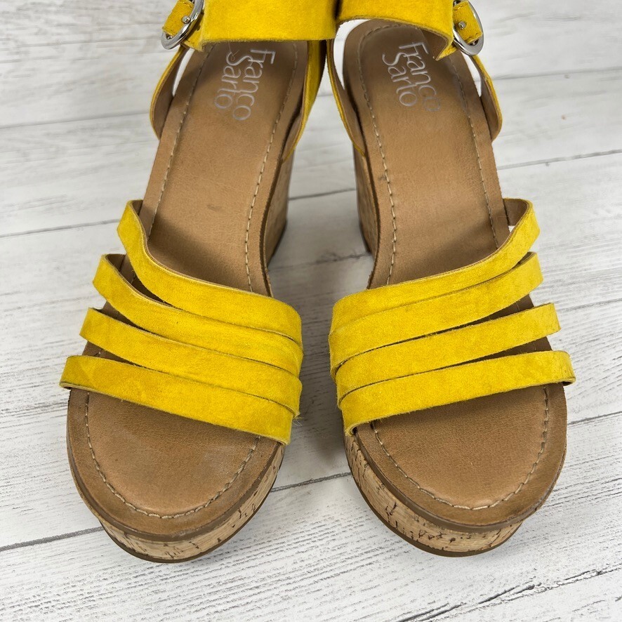 Franco Sarto Leather Crisania Platform Wedge Sandals Yellow 7m Cork