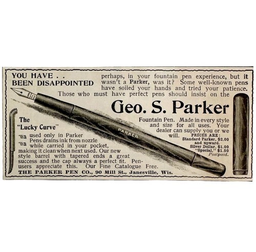 George Parker Lucky Curve Pen 1897 Advertisement Victorian Writing ADBN1xxx