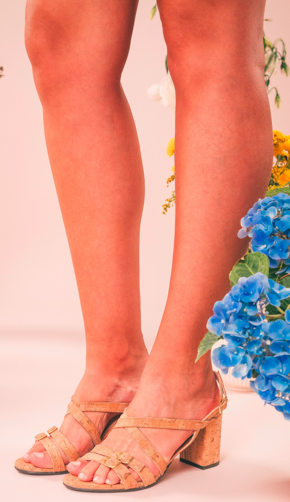 Vrouwen veganistische slingback hak schoenen natuurlijk duurzaam kurk open tenen