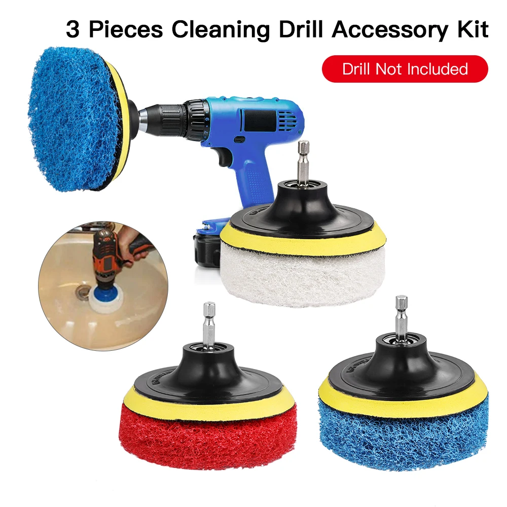 Va 5Pcs Bathroom Home Cleaning Brush Drill Accessory Kit Nylon Powered Scrub Pad