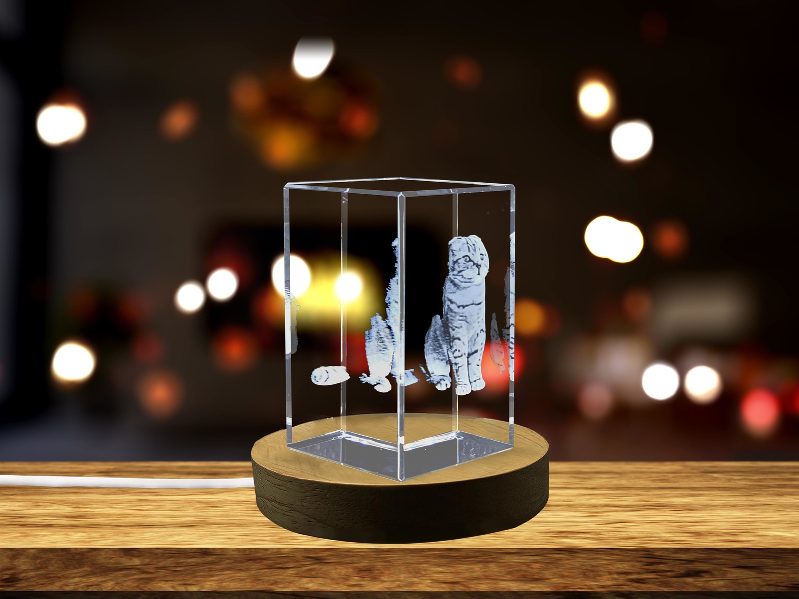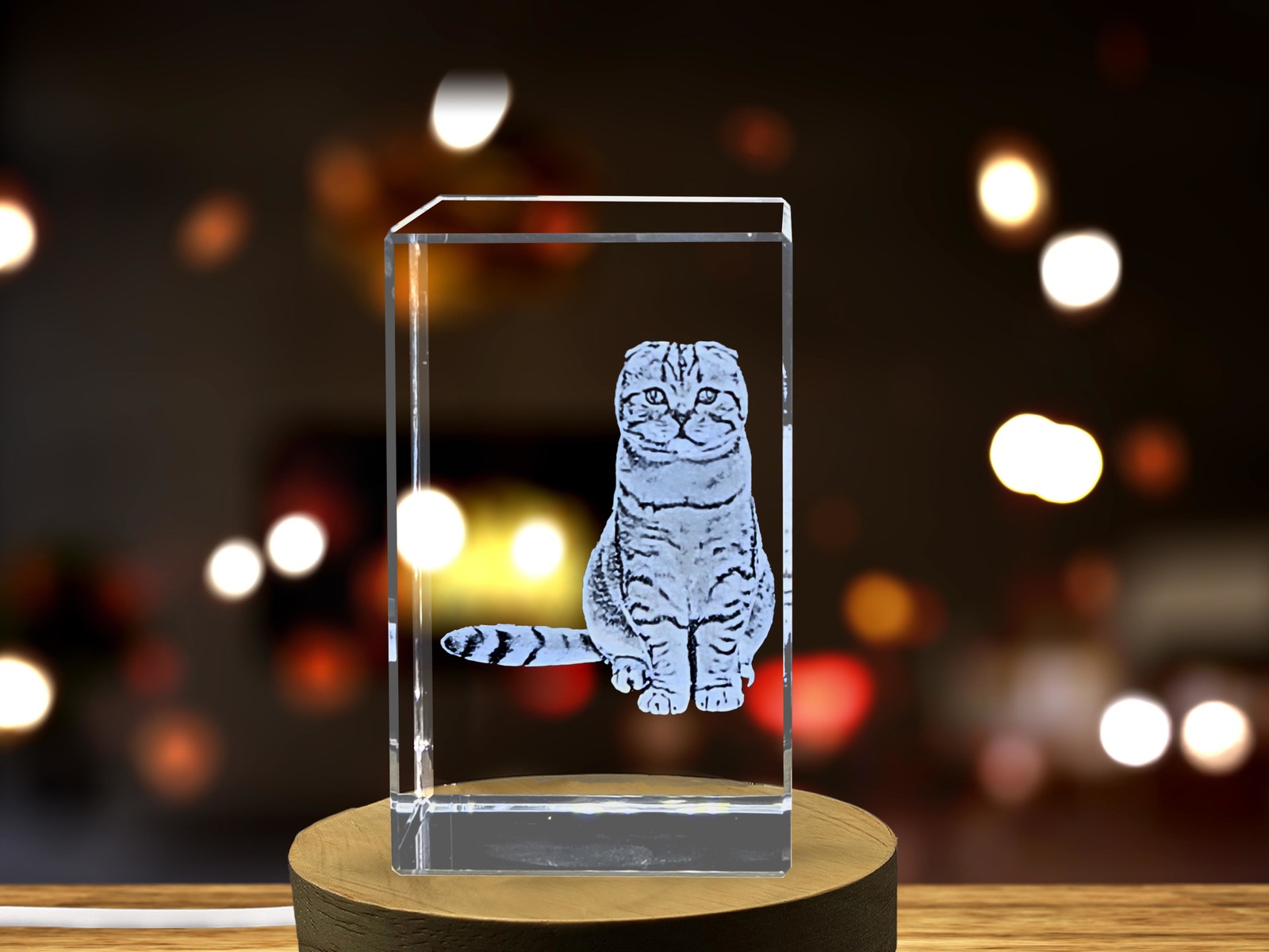 LED Base included | Scottish Fold Cat 3D Engraved Crystal Keepsake Gift
