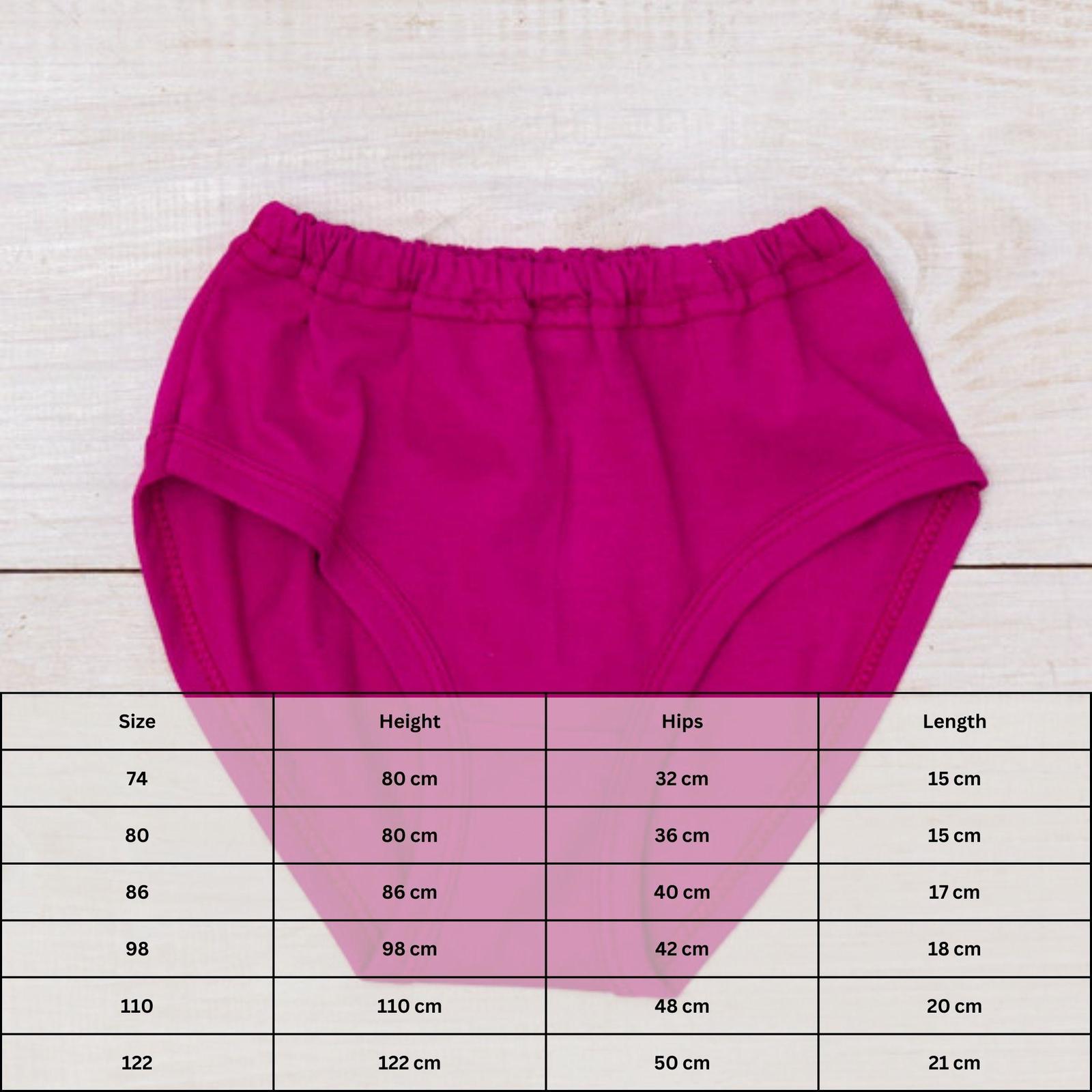 Panties for girls are an excellent choice for comfortable and stylish daily wear. Made from high-quality, soft, and breathable fabric, they offer exceptional comfort and ventilation. The ergonomic cut and elastic waistband ensure a perfect fit and support throughout the day. These panties are suitable for both everyday activities and active play. Available in various sizes, they easily match with any clothing, providing girls with confidence and convenience.
