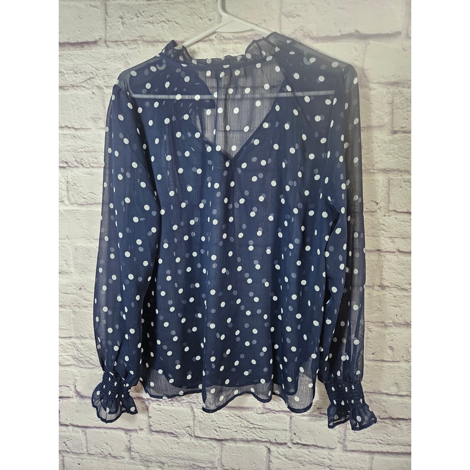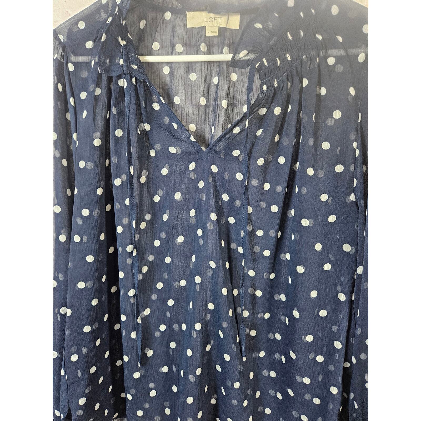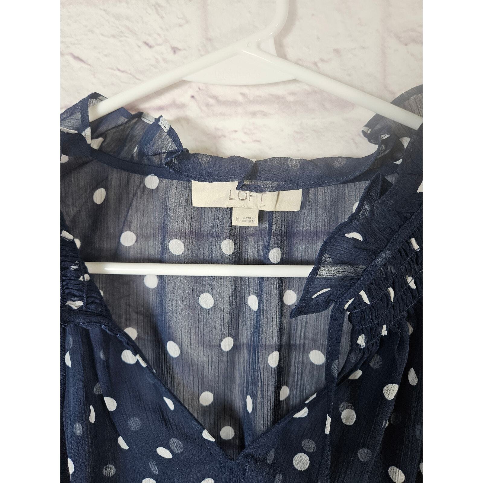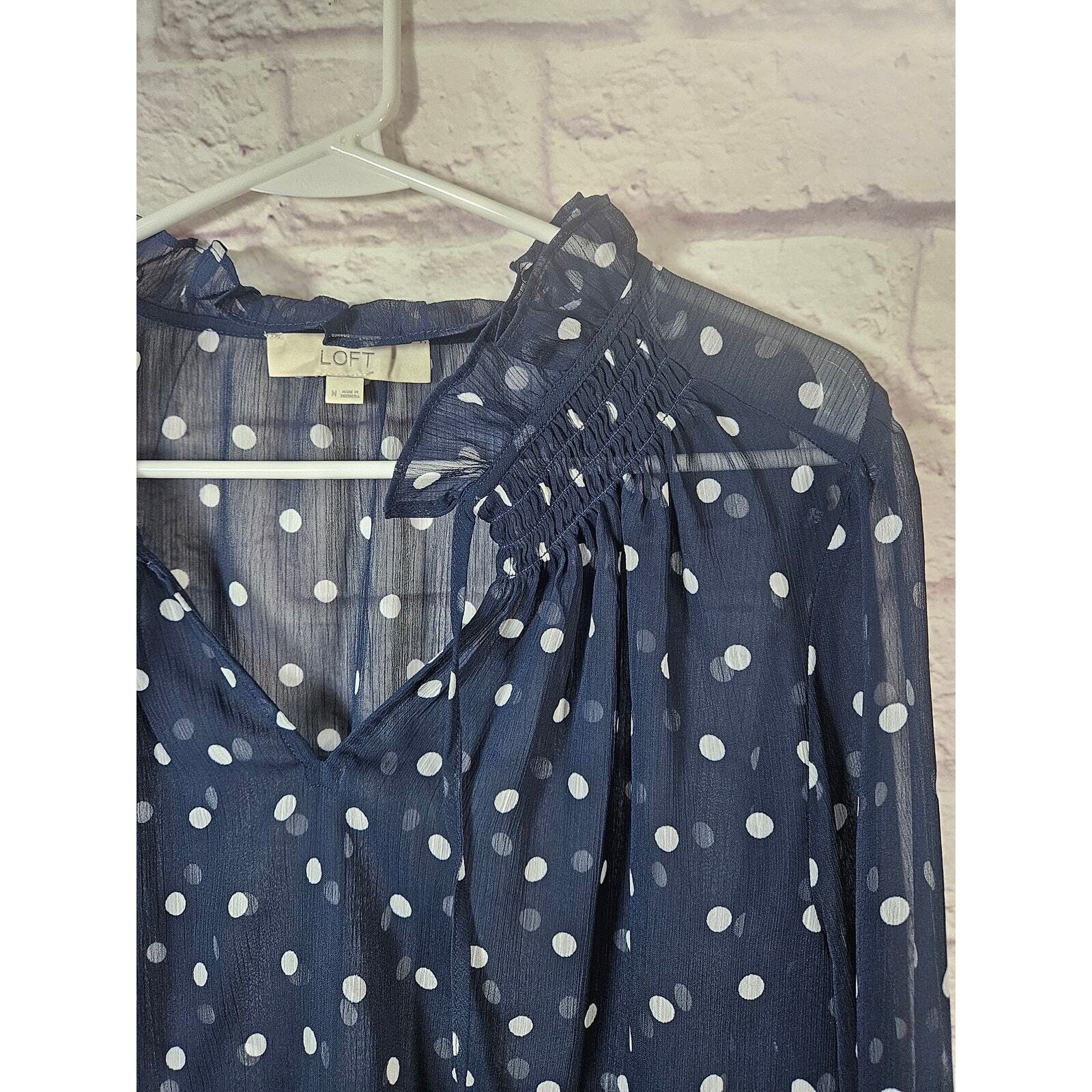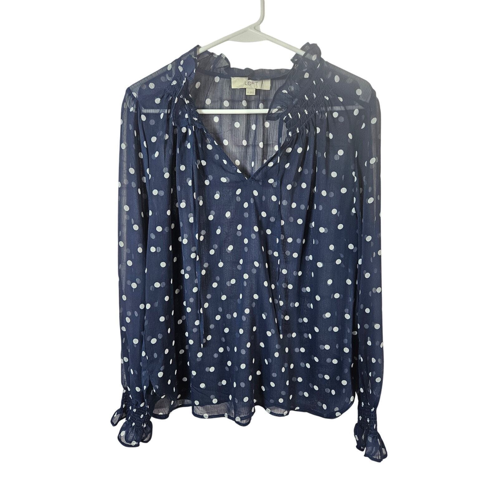 Ann Taylor LOFT Women's Sheer Blue White Bouse Polka Dots Ruffles Size Medium