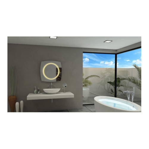 Features This illuminated mirror adds brilliance and style to any bathroom decor Sensor Switch leave 4 in. space between the wall and the sensor Demister Pad Commercial Grade 110 V Wiring 900 Lumens 3000K LED Warm Color IP44 Certified Zones 2 3 Energy Saving Approximately 120, 000 Hours Lifetime Easy To Fit 5 Year Warranty UL and CSA certificates Specifications Size: 28 x 28 in. Dimension: 28 H x 2 W x 28 L Weight: 30 lbs