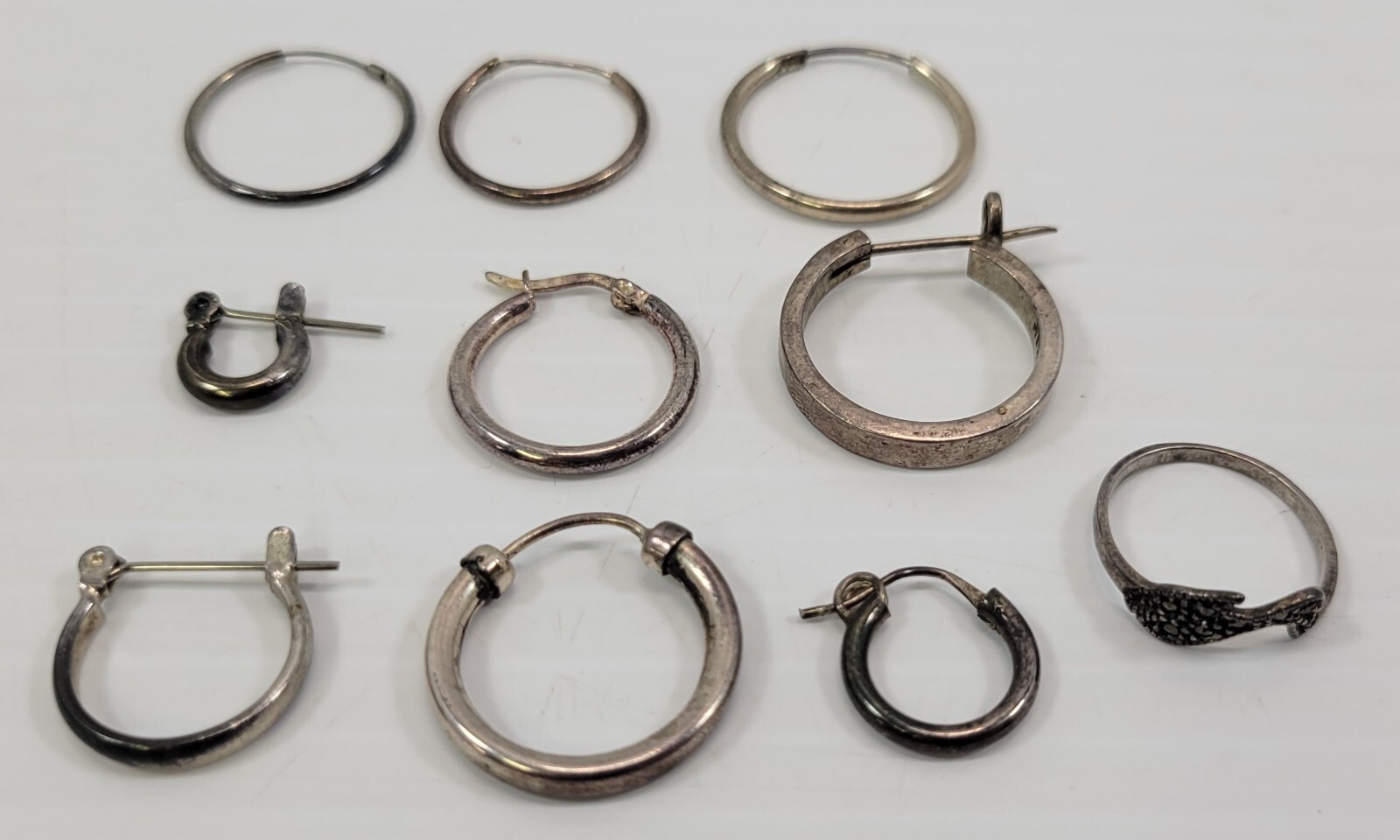 *B9) Mixed Lot of 9 Piece Junk Drawer Jewelry Sterling Silver Earrings Ring