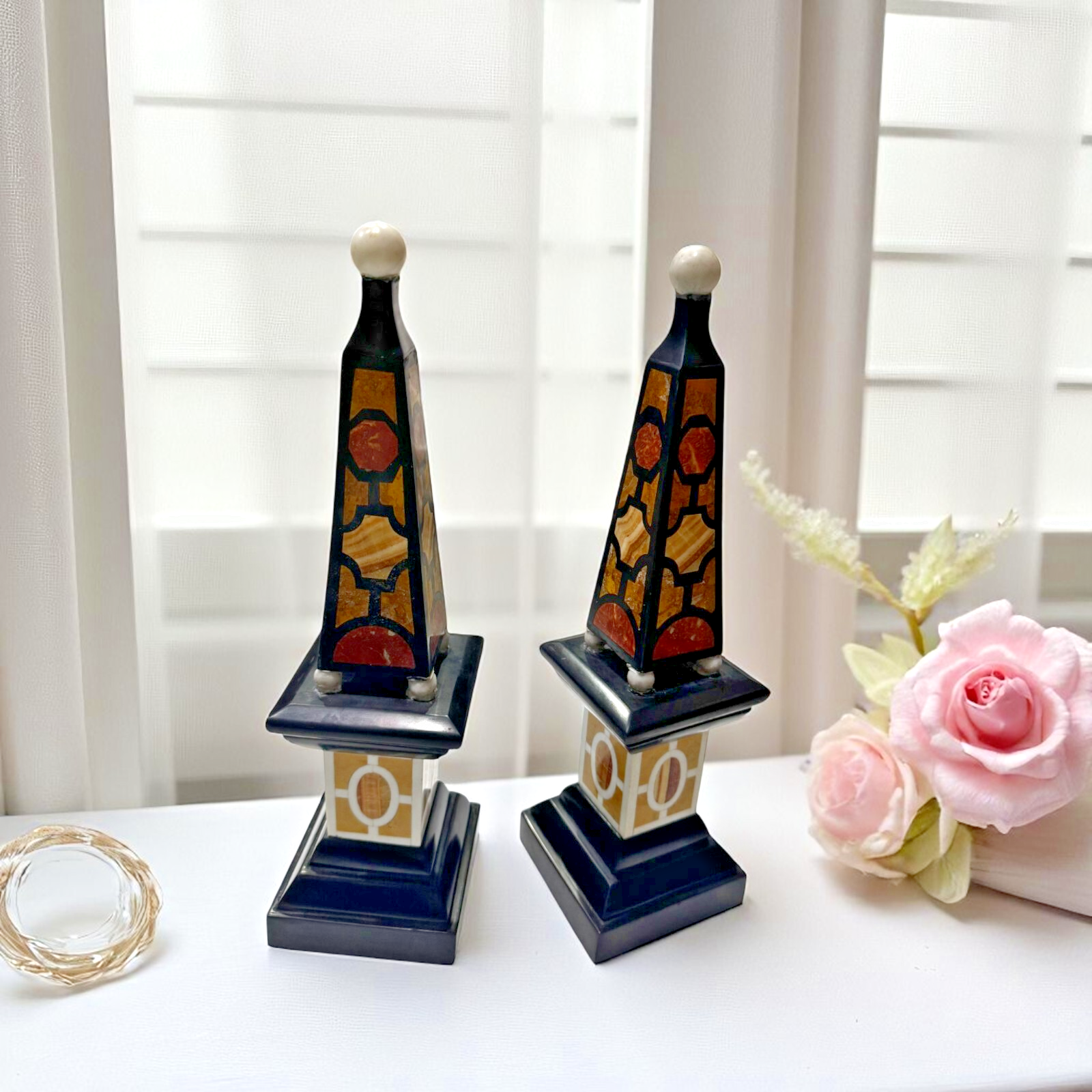 15" Buy Set of 2 Pair Black Marble Obelisk Elegant Handmade Mosaic Design Arts