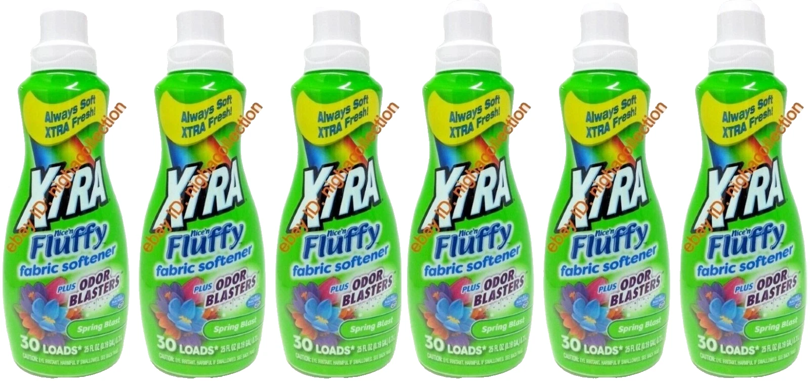 ( LOT 6 ) xtra nice'n Fluffy Liquid Fabric Softener Spring Blast 25 oz Each = 180 Loads