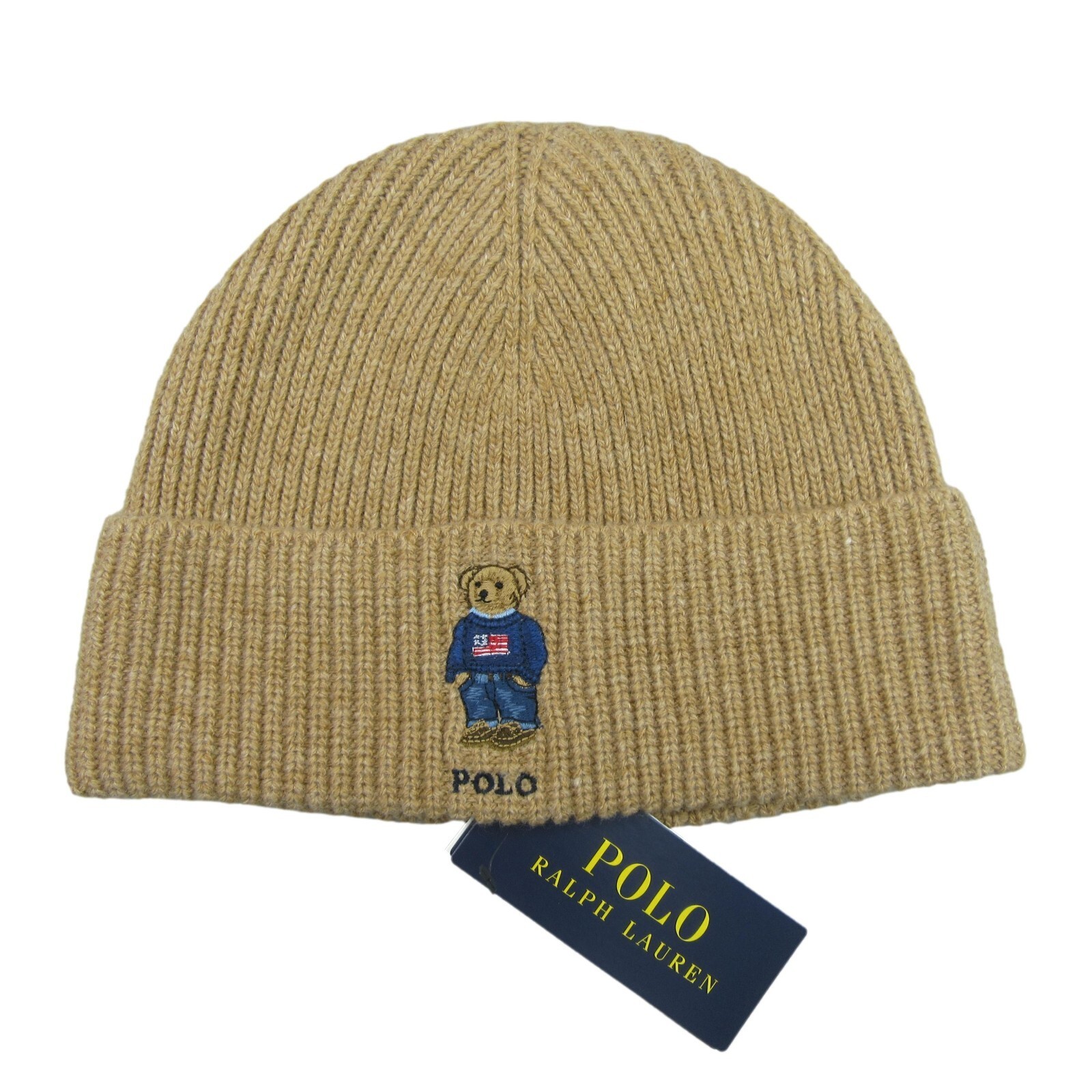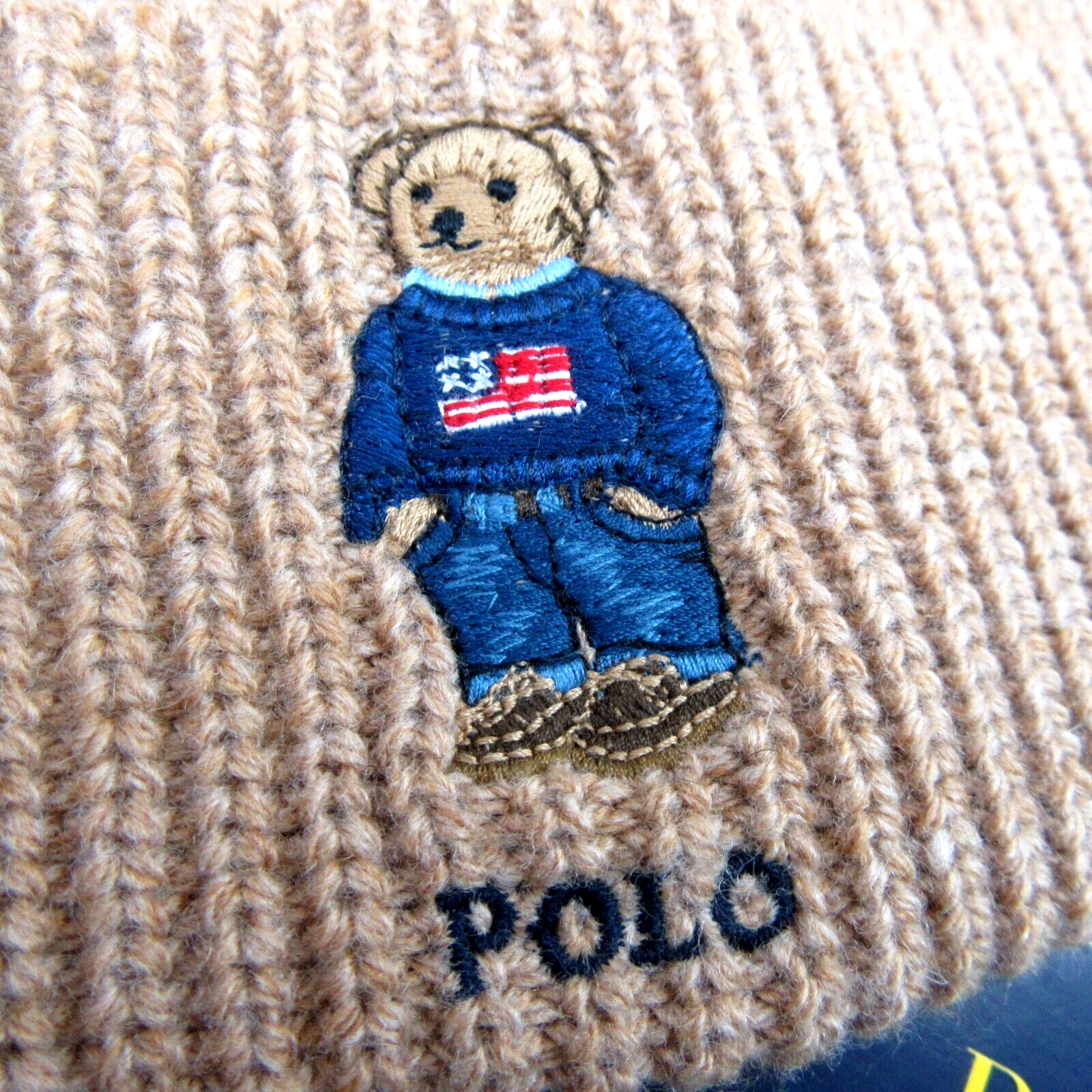 Polo Ralph Lauren RL Embroidered USA Bear Beige Tan Beanie Cap