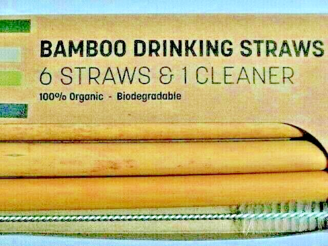 Eco-Friendly Bamboo Drinking Straws 6-Pc 1 Brush 100% Organic Biodegradable NEW