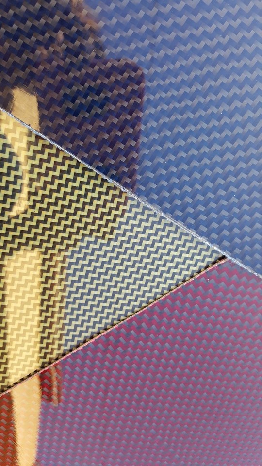 ? Colored Carbon Fiber Kevlar Aramid Hybrid Panels (Yellow, Red) ? Adds strength and a unique visual appeal.